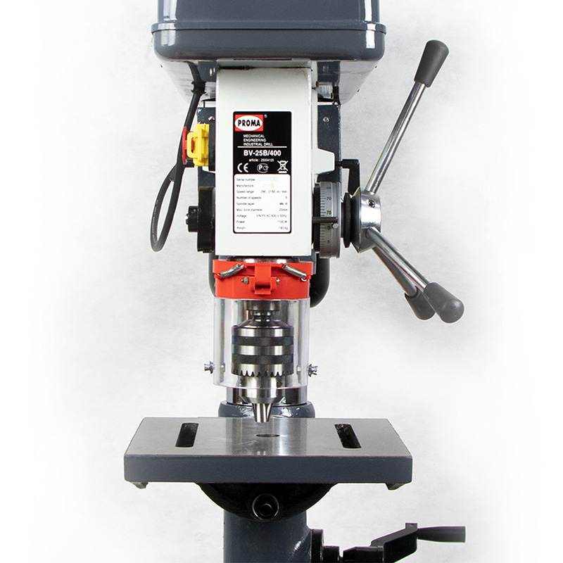 Станок обладает рядом особенностей. Жесткая конструкция, 5-ти скоростной ременный привод для снижения шума при работе. Мощный асинхронный двигатель выдерживающий высокие нагрузки. BV-25B/400 оснащён функциями поворота, подъёма и наклона стола, а также поворота шпиндельной головки на колонне. Это обеспечивает удобство работы и расширяет возможности станка. 2 т- образных паза в основании позволяют крепить тяжелые корпусные детали и различные приспособления.