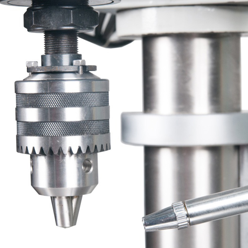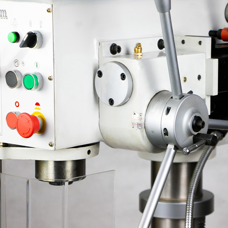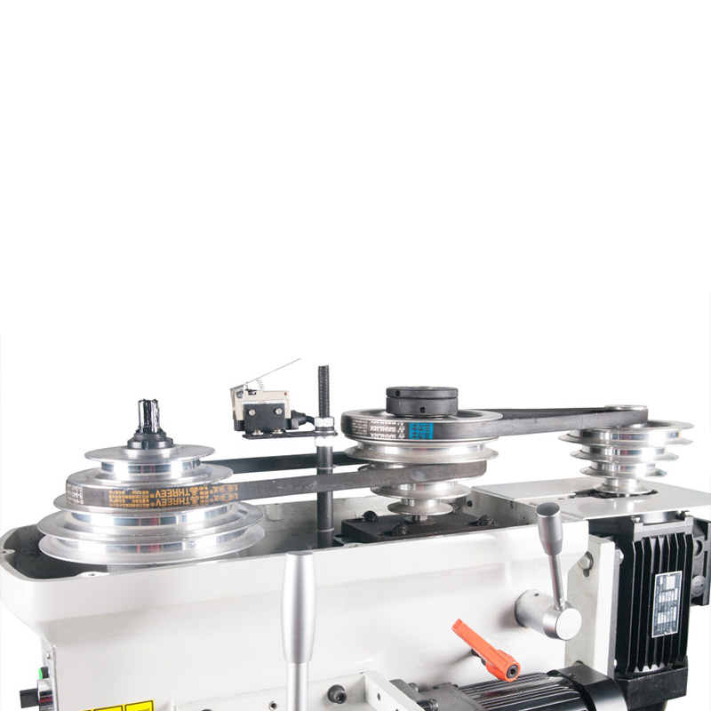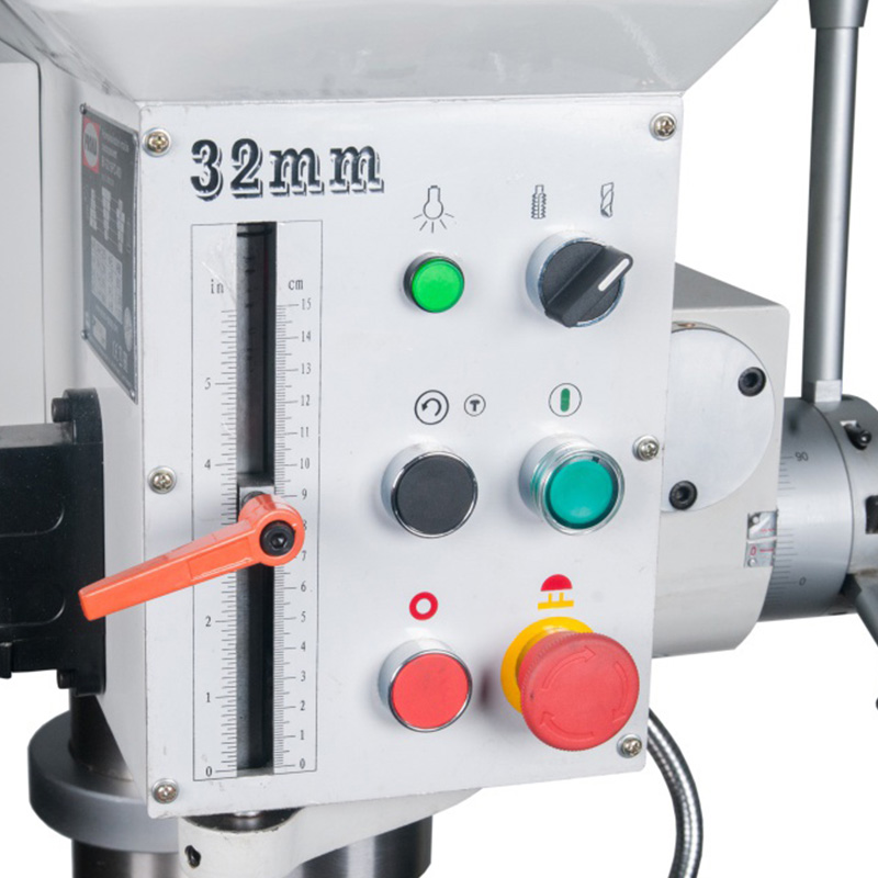 Станок обладает рядом особенностей. Отдельно стоить отметить регулируемую автоматическую вертикальную подачу пиноли при сверлении с автоматическим отключением на заданную глубину. 8 скоростной ременный привод с промежуточным шкивом для снижения шума при работе. Мощный асинхронный двигатель выдерживающий высокие нагрузки. Автореверс при нарезании резьбы, причём так же как автоподача – с настройкой заданной глубины.