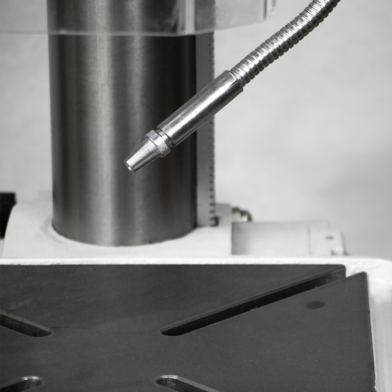 Для дополнительной защиты оператора станок оборудован защитным экраном с концевиком, который не закрывает обзор, но обеспечивает безопасность во время работы. Конструкцией предусмотрена система охлаждения продлевающая срок службы режущего инструмента.
