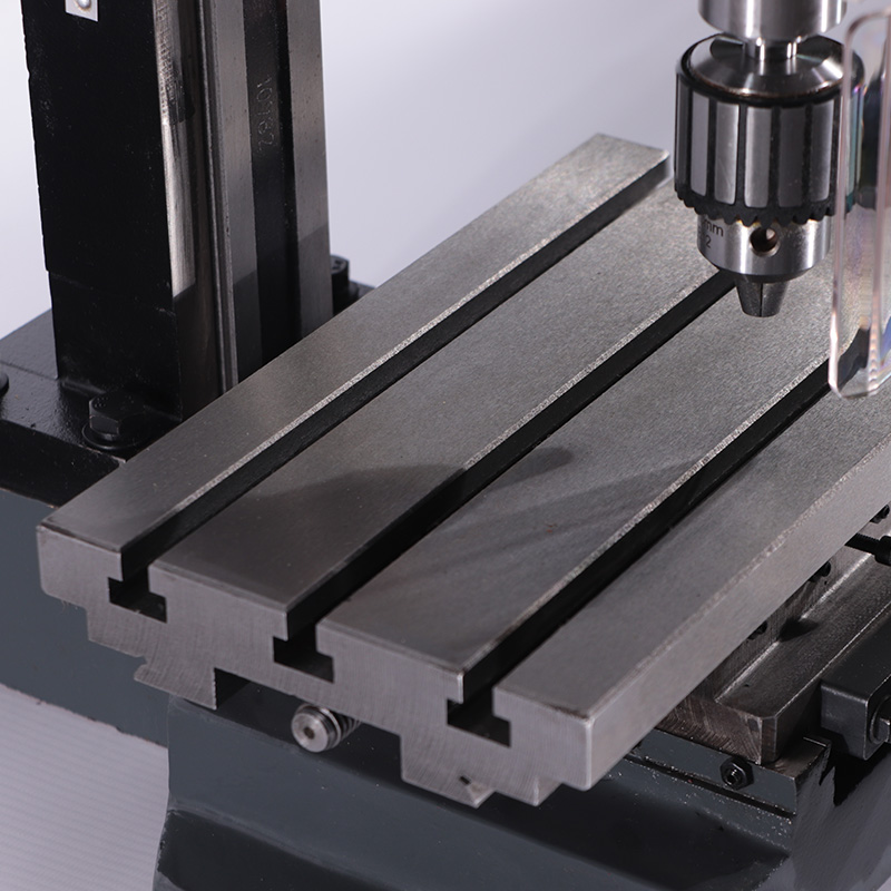 Из достоинств следует отметить вертикальную тонкую подачу и плавную регулировку оборотов, которые обеспечивают максимальную точность и качество обработки детали. Есть и другие достоинства. Например: возможность установки фрезерной головки под углом вправо или влево. Рабочий стол из чугуна оснащен Т-образными пазами для крепления дополнительных приспособлений или заготовки.