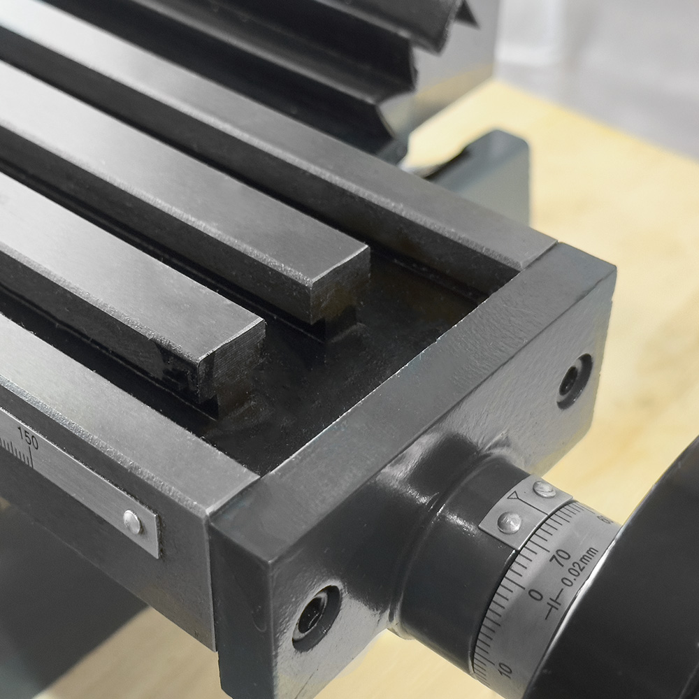 Из достоинств следует отметить вертикальную тонкую подачу и плавную регулировку оборотов, которые обеспечивают максимальную точность и качество обработки детали. Есть и другие достоинства. Например: возможность установки фрезерной головки под углом вправо или влево. Рабочий стол из чугуна оснащен Т-образными пазами для крепления дополнительных приспособлений или заготовки.