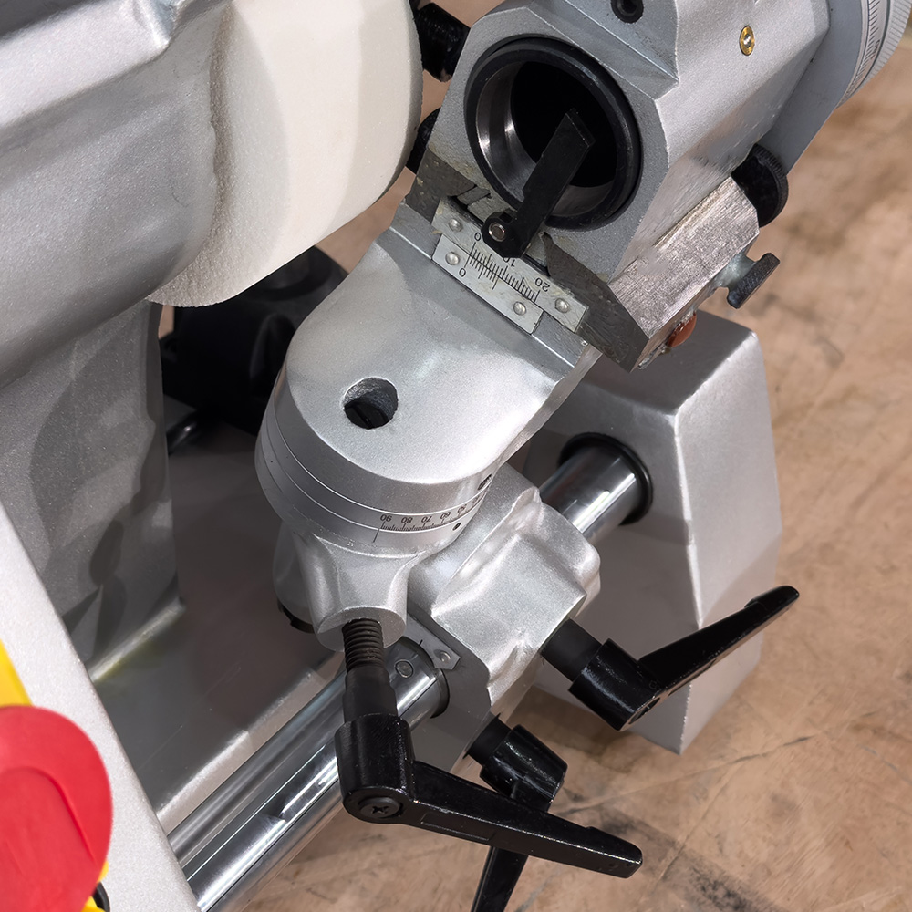 Модель отличает высокая точность, благодаря монолитной конструкции и микроподачам. Универсальный суппорт позволяет настроить инструмент на заточку под любой угол. Компактные габариты и питание от бытовой сети напряжения способствуют размещению станка в любом удобном месте. Ременный привод с асинхронным двигателем обеспечивает бесшумную работу и стабильное вращение под нагрузкой. В комплекте шлифкруг-чашка и цанга для фрезы или сверла с цилиндрическим хвостовиком.