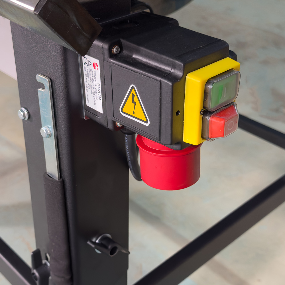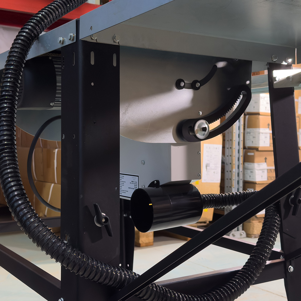 Ременный привод с асинхронным двигателем рассчитан на высокие нагрузки и долговечную эксплуатацию. Имеется патрубок для подключения стружкопылесоса.