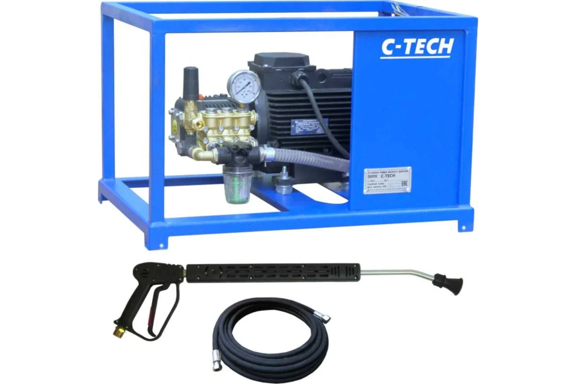 Оборудован надежным асинхронным электродвигателем. Керамические поршни и латунная головка снижает нагрев и повышает долговечность устройства. Шланг пистолета имеет двойную оплетку для защиты от истирания и изгибания. Прямоугольная рама удобна для складирования и транспортировки.