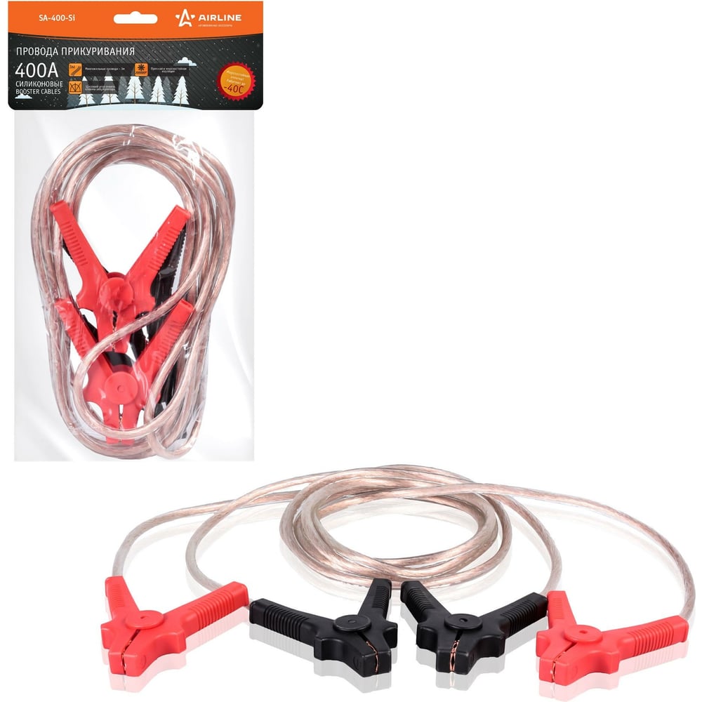 Провода прикуривания Airline 400 А, 3 м, 12/24 В, силиконовые SA-400-Si помогут завести автомобиль с севшей АКБ. При этом оплетка не потрескается и провод не развалится после первого использования. Многожильный токонесущий кабель в силиконовой морозостойкой оплетке. Дополнительные характеристики: Диаметр провода: 10 мм; Сечение провода: 10.6 мм2.
