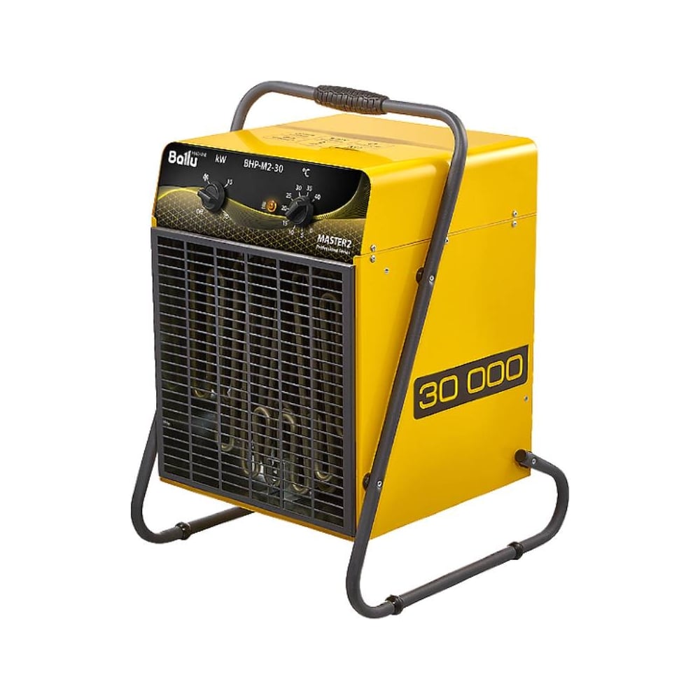 Тепловая пушка Ballu BHP-M2-30 НС-1282611 серии Master2 – новая флагманская серия профессиональных тепловентиляторов для общего обогрева помещений при ремонте, отделочных работах, на стройках и других объектах, где есть потребность в автономном источнике отопления.Тепловентиляторы данной серии могут работать в режиме «без нагрева», в качестве переносных вентиляторов. Новая панель управления со световой индикацией показывает активный режим нагрева. Тепловентиляторы серии Master2 имеют повышенную степень пылевлагозащиты IP24, что позволяет использовать приборы во влажных помещениях и на открытых площадках без навеса.В приборах серии применяются электрические компоненты с большим ресурсом работы, высокоточный капиллярный терморегулятор и защитный термостат с функцией блокировки автоматического включения в случае перегрева. Тепловентиляторы Master2 предназначены для непрерывной работы 24/7 в самых суровых условиях эксплуатации, даже при отрицательных температурах до -30°С. Новая опора-трансформер с увеличенным «дорожным просветом» (тепловентилятор можно ставить на строительный мусор и в грязь) или возможностью наклона.Самая мощная 40кВт модель серии Master2 дополнительно к остальным преимуществам серии комплектуется трёхскоростным вентилятором, позволяющим регулировать производительность по воздуху. Поставляется на колёсном шасси для удобного перемещения.