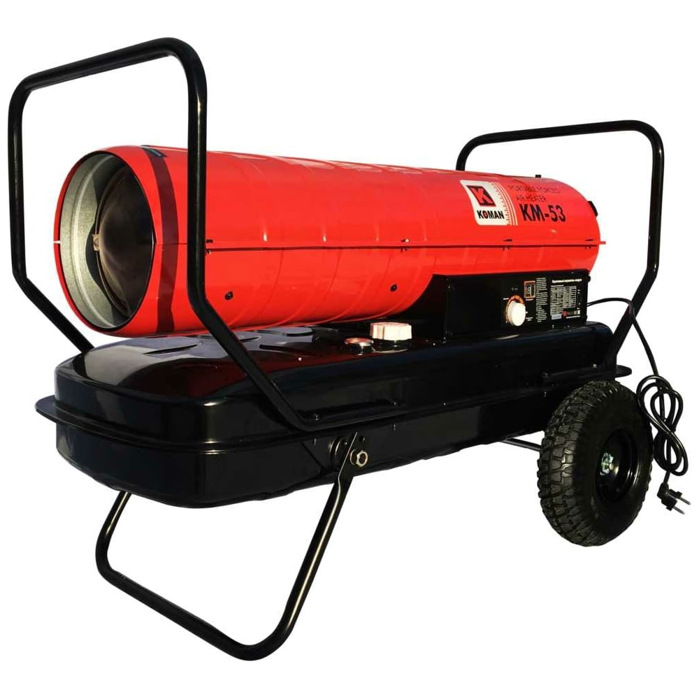 Тепловая пушка KOMAN дизель/керосин 53KW прямой нагрев, KM-53 используется на строительных площадках, в сельском хозяйстве, для осушения и отапливания производственных и складских хорошо проветриваемых помещений. Пушка оборудована индикатором температуры воздуха и встроенным термостатом, что позволяет им производить автоматическое выключение и запуск, поддерживая заданный температурный режим. Также тепловая пушка оснащена системой высоковольтного контроля пламени и датчиком уровня топлива.