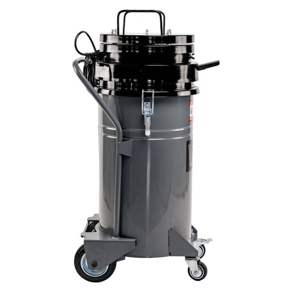 Расширенное шасси и выносная ручка для устойчивости и маневренности. Передние поворотные колеса с тормозом для фиксации пылесоса на строительной_ площадке.