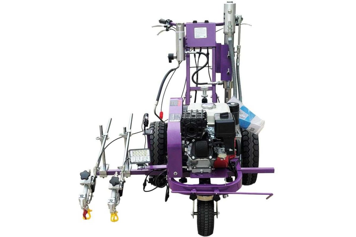 Разметочная машина AktiSpray AvS-14012DR, комплект на 2 пистолета (14 л/мин, 230 бар, бензин) с насосом гидропоршневого типа. Бензиновый двигатель 5,5 кВт (7,5 л.с., 4-х тактный, аналог Honda). Производительность насоса 14,0 л/мин. Максимальное давление на выходе из аппарата 250 бар.