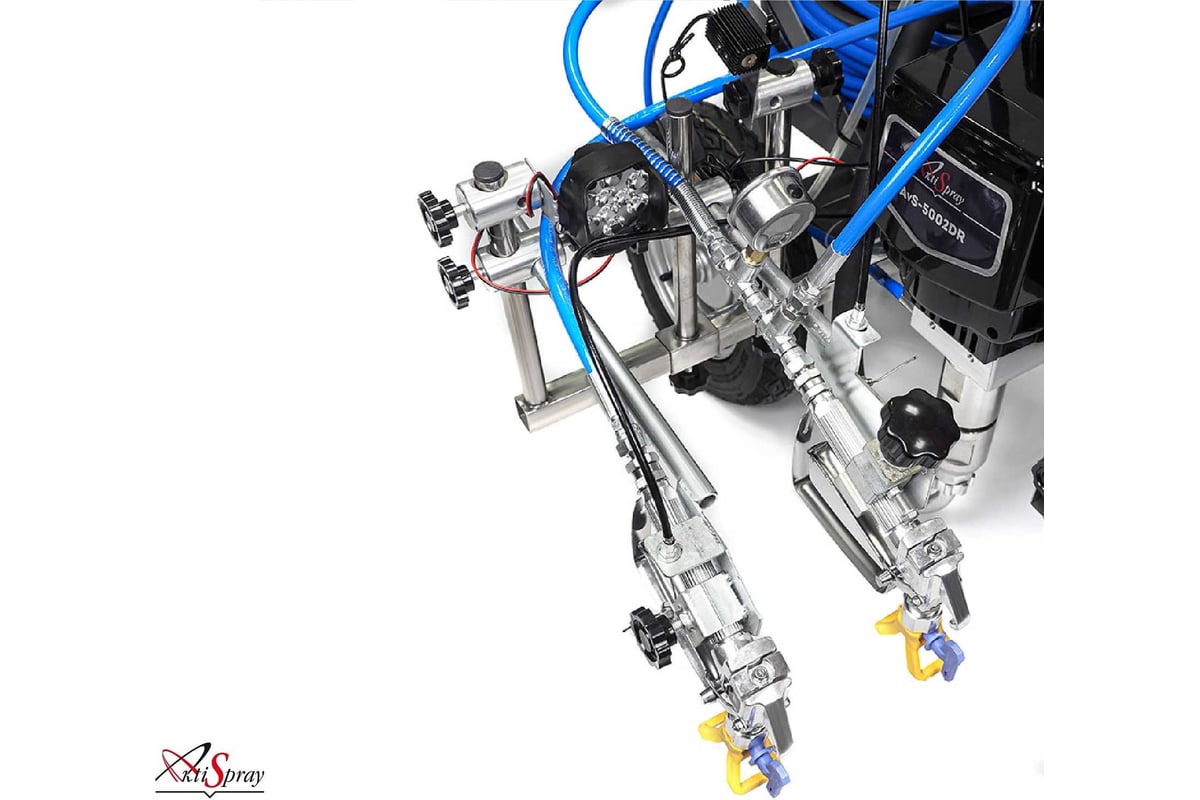 Можно использовать как окрасочный аппарат с автономным двигателем в местности с проблемой (или неудобством) подключения электричества. Просто снимите пистолет с кронштейна, размотайте шланг и распыляйте ЛКМ как на обычном окрасочном аппарате.