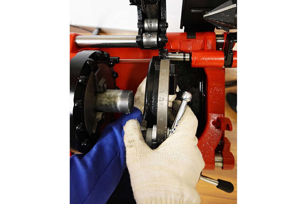 Резьбонарезной станок подходит для эксплуатации в интенсивном режиме, что позволяет использовать его в серийном производстве. Самоцентрирующийся труборез и центрирующийся зажимной патрон существенно облегчают работу оператора. Модель питается от электросети с напряжением 220 В. Оборудование служит для нанесения точной и качественной резьбы на металлические заготовки. Предназначен для нарезания трубной конической резьбы BSPT 1/2"- 2" (возможно доукомплектовать метрической резьбонарезной головкой - артикул 2.20055).