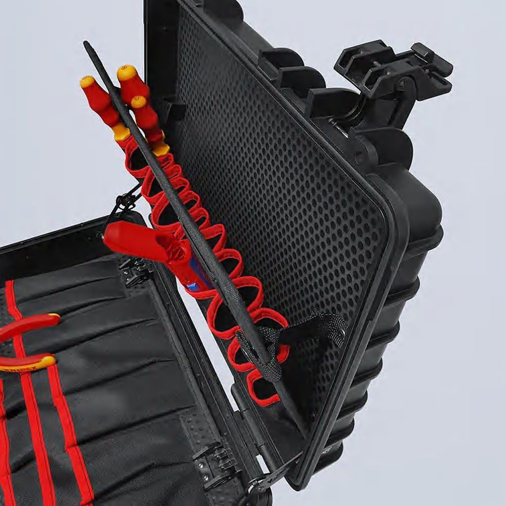 00 21 34 HL S2 Чемодан с инструментом “Robust23 Start“ Electric Комплектация 6 инструментами KNIPEX; всего – 24 фирменных инструмента. Для самых сложных рабочих условий: пылезащищенный, водонепроницаемый и термостойкий. Макс. нагрузка: 25кг. Объем: 23литра. Чемодан из ударопрочного полипропилена, пригодный для авиаперевозок. Инструментальные панели из двойного грязеотталкивающего полипропилена с 2карманами и петлями. Лоток с алюминиевыми вставками. клапан автоматического выравнивания давления. термоустойчивость от - 30°C до + 80°C. приспособление для навесного замка. Pазмеры внешние (Ш x В x Г): 470 x 370 x 190 мм; размеры внутренние (Ш x В x Г): 437 x 307 x 172 мм. - Размер: Ширина внешняя (внутренняя): 470mm 437mm - Размер: Высота внешняя (внутренняя): 370mm 307mm - Размер: Глубина внешняя (внутренняя): 190mm 172mm Комплект поставки: 1 x 11 06 160 KNIPEX Стриппер С раскрывающей пружиной, универсальные (_ 5,0 mm / 10,0 mm2), 1 x 97 78 180 KNIPEX Пресс-клещи для обжима контактных гиль
