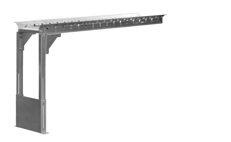 Каждая опора имеет 2 комплекта направляющих, для изменения высоты рольганга (высоты рольганга - от пола до рабочей поверхности роликов):