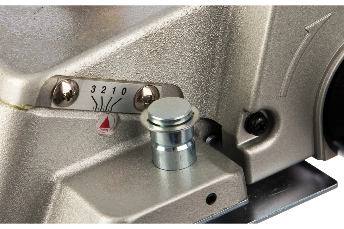 Глубина резки зависит от ширины строгания. Регулировка глубины строгания возможна поворотом передней рукоятки электрорубанка. Передний ролик предназначен для быстрого возвращения инструмента к оператору при выполнении повторных проходов.