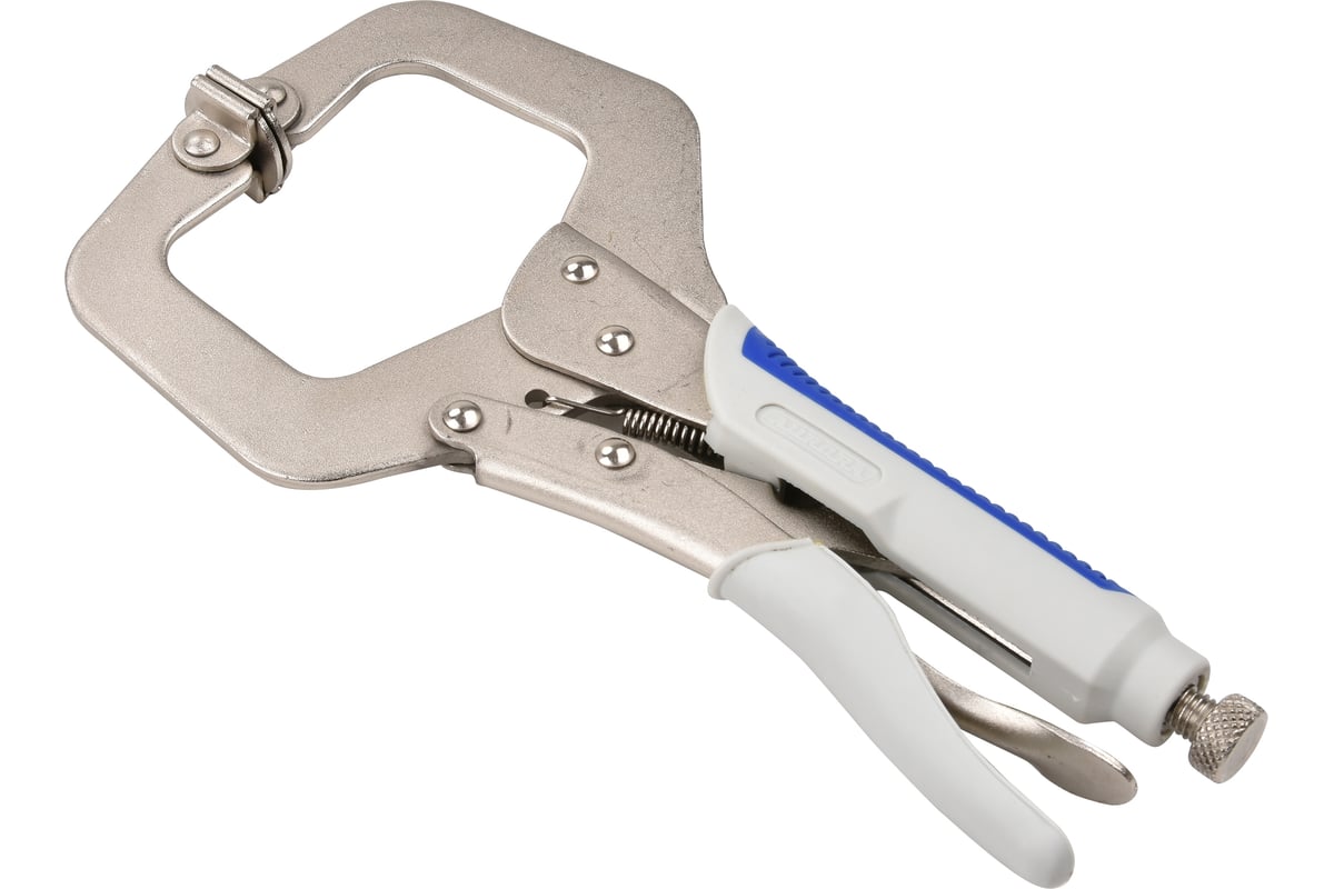 Винтовой фиксатор на ручке позволяет регулировать оптимальное расстояние между губками для зажима заготовки;