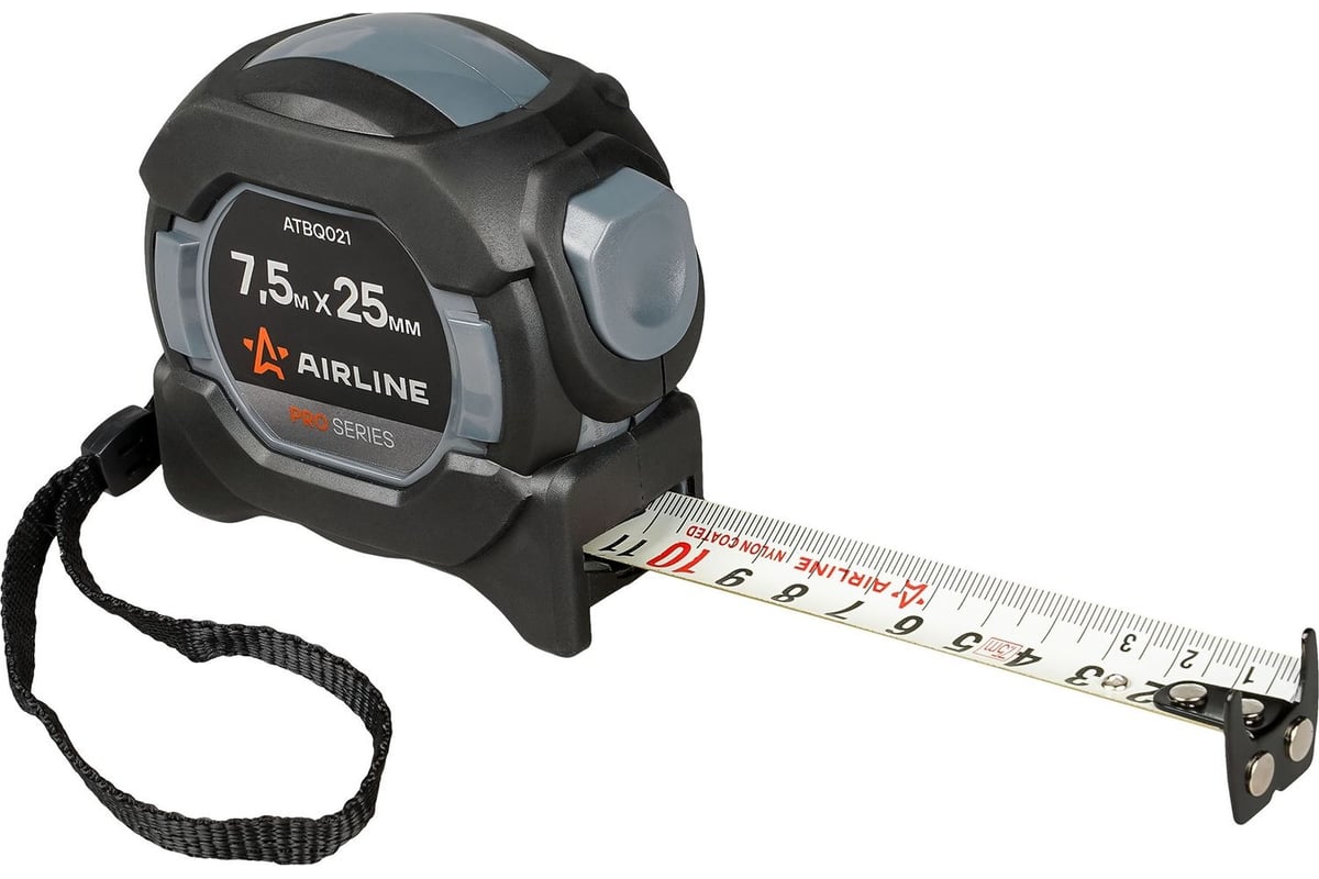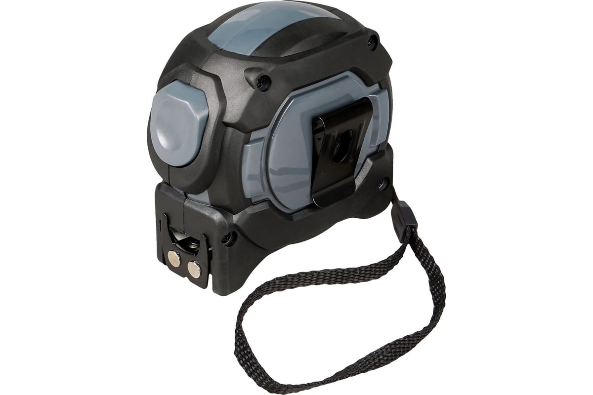 Рулетка изготовлена из композитного прорезиненного ударопрочного пластика, корпус изделия имеет четыре точки крепления. Функция защиты пальца предотвращает возможность получения травмы при возвращении ленты в корпус. Специальный механизм самостоятельно блокирует положение ленты, при ее извлечении из корпуса. Изделие оснащено двухсторонним магнитным зацепом и двухсторонней шкалой, что обеспечивает универсальность и удобство при проведении измерений на различных поверхностях, в том числе металлических. Лента изделия имеет защитное нейлоновое покрытие, благодаря которому увеличивается сопротивление к коррозии, а также матовое антибликовое покрытие, которое обеспечивает комфортное считывание чисел со шкалы. Зацеп и клипса для ремня окрашены краской, что повышает их антикоррозийные свойства.