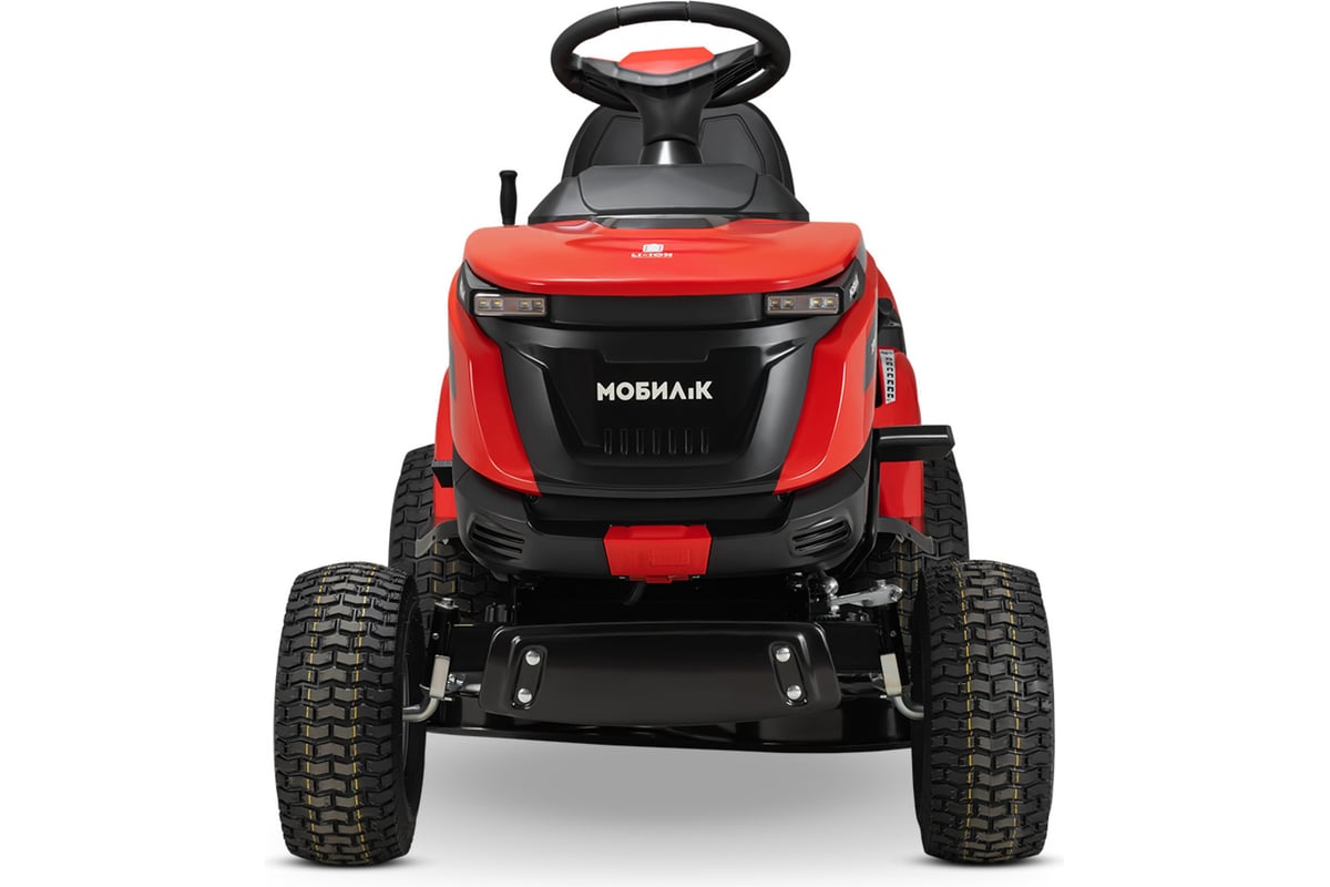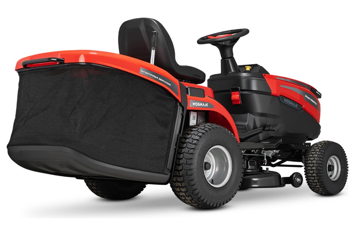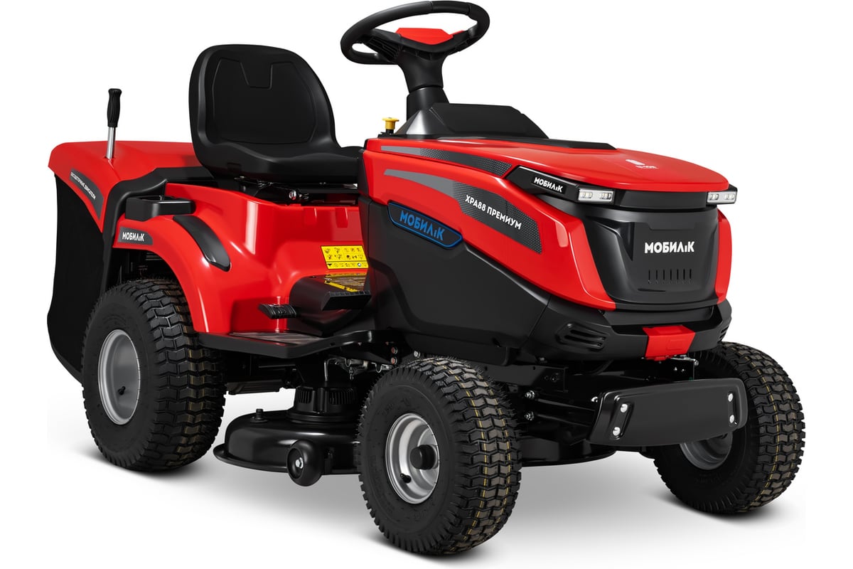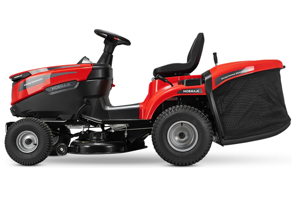 Садовый трактор аккумуляторный МОБИЛ К XPA88 ПРЕМИУМ MBK0032697 представляет собой высокотехнологичную самоходную машину, сочетающую в себе функции трактора и газонокосилки. Кошение травы производится высокопроизводительной декой шириной 88 см, что позволяет рекомендовать использование машины как на участках от 30 до 100 соток (0,3 - 1 Га), так и на участках богее 1 Га. Опциональная задняя сцепка дает возможность работы машины с различным прицепным оборудованием: прицепами, газонными катками, разбрасывателями семян, аэраторами и др., что наделяет ее функциями трактора. Трактор оснащен электрическим приводом и работает от съемных Li-Ion батарей платформы МОБИЛ К 60 Вольт ПРЕМИУМ, поставляющихся отдельно. Изделие может использовать одновременно от двух до шести Li-Ion батарей 5 Ач и 10 Ач платформы МОБИЛ К 60 Вольт ПРЕМИУМ в любой комбинации. Запас энергии батареи, характеризующий максимальный объем выполняемой работы на одном заряде - от 600 до 3600 Ватт*ч в зависимости от установленного набора батарей. Аккумуляторные батареи питают 3 высокоэффективных бесщеточных двигателя. Один двигатель находится в заднем мосту и обеспечивает движение вперед со скоростью до 12 км/ч (при кошении - до 9 км/ч) и движение назад со скоростью до 4 км/ч. Еще 2 двигателя установлены на деке и приводят в действие 2 ножа. На одном заряде аккумуляторной батареи райдер способен скосить до 90 соток (9000 кв. м.). Входящее в комплект поставки зарядное устройство одновременно заряжает все аккумуляторные батареи, установленные в трактор.