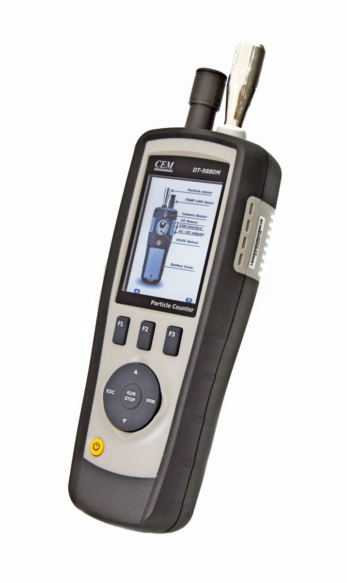 DT-9880M Счётчик пылевых частиц оснащен 2,8-дюймовым, цветным TFT ЖК-экраном и портом MicroSD для хранения фотографий (JPEG) и видеозаписей (3GP) с возможностью последующего просмотра на персональном компьютере. Прибор обеспечивает получение быстрых и точных показаний содержания взвешенных твердых частиц, измерение массовой концентрации РМ2.5/РМ10, измеряет температуру воздуха и относительную влажность. Прибор представляет собой экологическую мини лабораторию, которая выполняет весь комплекс указанных измерений. Он удобен для принятия эффективных мер по защите окружающей среды и ресурсосбережению. Кроме того, данное устройство позволяет определять температуру точки росы, проводить промышленные измерения и анализировать данные по реалистичным снимкам и записям на цветном TFT ЖК-экране. Все показания и снимки можно сохранить в памяти MicroSD. Затем пользователь может просмотреть полученные результаты измерений в офисе на персональном компьютере.