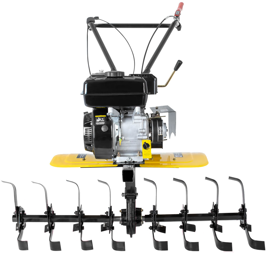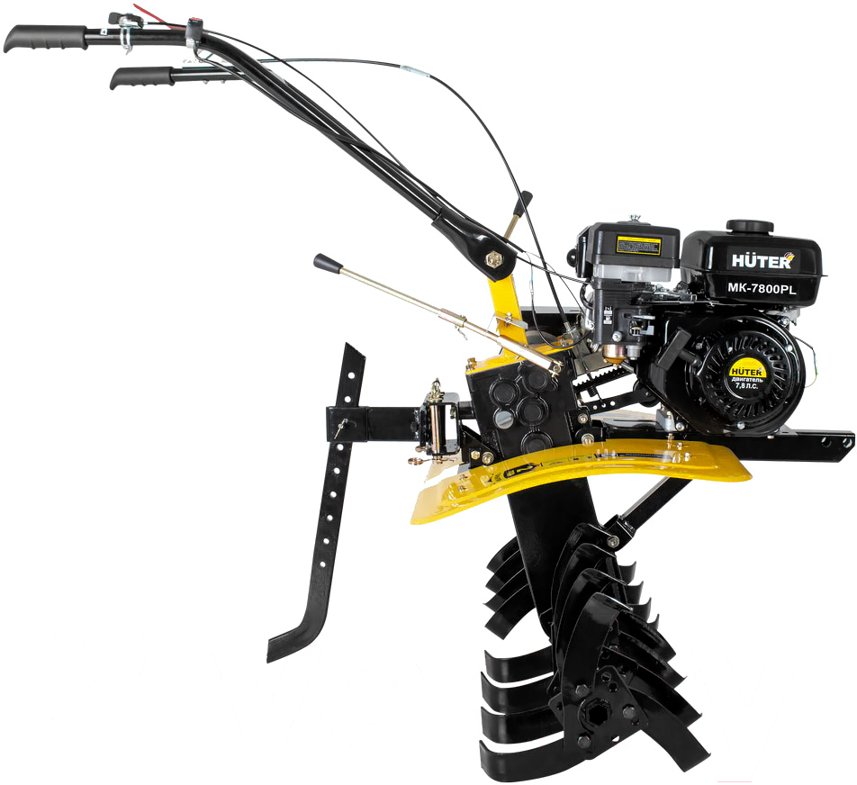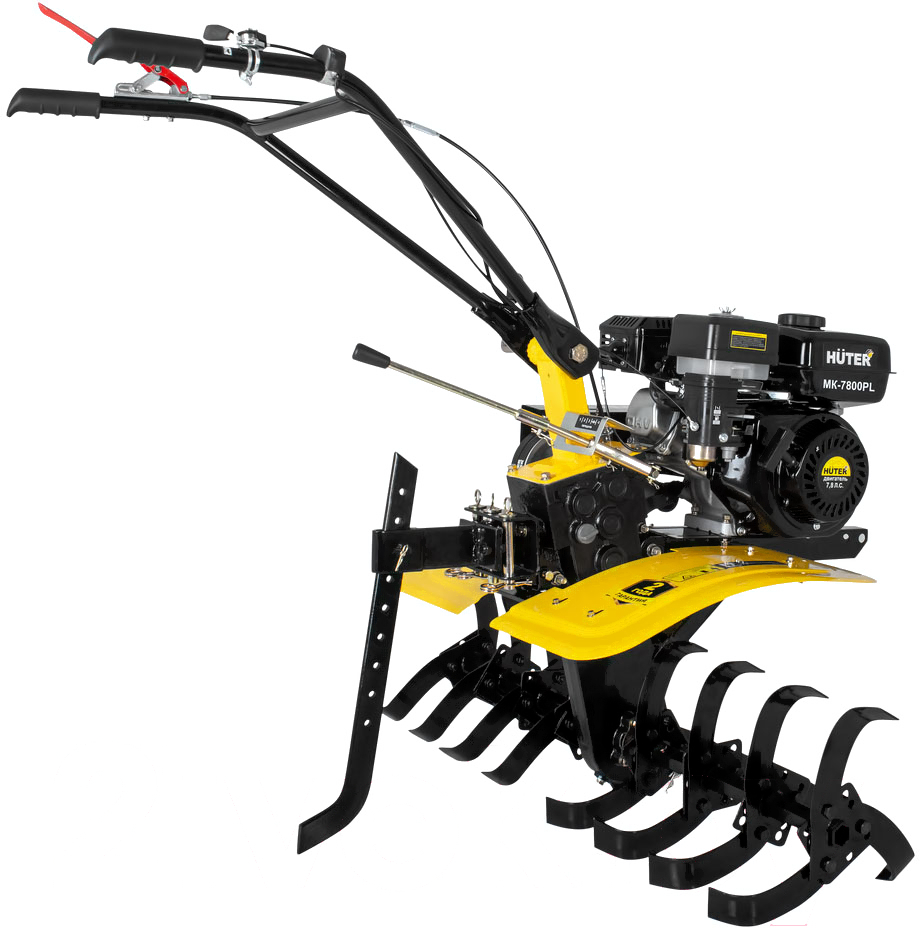 Сельскохозяйственная машина Huter МК-7800PL BIG FOOT используется для обработки почвы - рыхления, боронования, выравнивания, прополки и других работ на приусадебных, огородных и садовых участках. Агрегат имеет бензиновый двигатель мощностью 7,8 лошадиных сил и четыре передачи, одна пониженная, две обычные вперед и одну назад. Для удобства оператора все переключатели находятся на ручках агрегата, а резиновые накладки обеспечивают удобное удержание. Металлический щиток предотвращает попадание грунта на оператора и двигатель. Ширина обработки 1 метр вместе с топливным баком в 3,6 литра позволяют обрабатывать большие территории без дозаправки.