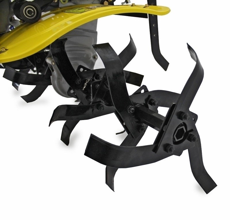 - Двигатель мощностью 7,8 л.с. подходит для обработки почв любого характера, включая целинную;