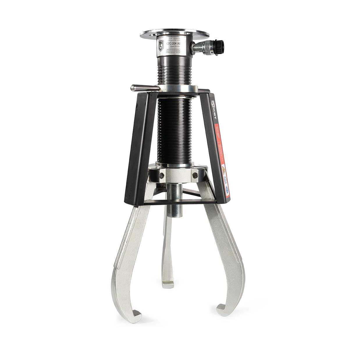 Гидравлический съемник для демонтажа деталей с натяжной посадкой — профессиональное оборудование для механизации ремонтных работ с усилием до 20 тонн. Трехзахватная конфигурация обеспечивает надежную фиксацию демонтируемых деталей в диапазоне диаметров 55-300 мм при глубине захвата 150-240 мм.