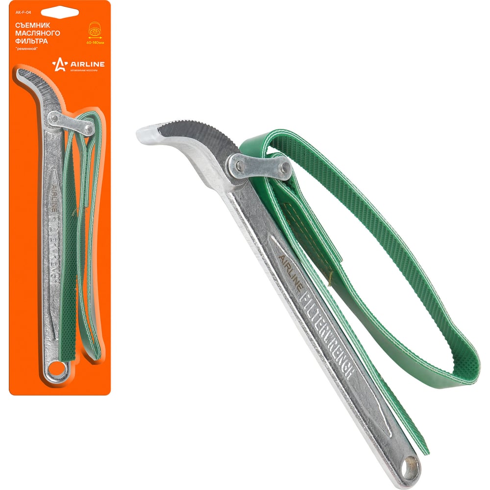 Съемник масляного фильтра "Ременной" 60-140 мм AIRLINE AK-F-04 Инструмент поможет произвести демонтаж масляного фильтра автомобиля. Конструкция для съема фильтра представлена в виде ременного зажима, с помощью которого закрепляется деталь. Размер зажима равен 60-140 мм. Артикул: AK-F-04 Состав: металл/пластик Размер, мм: 60-140
