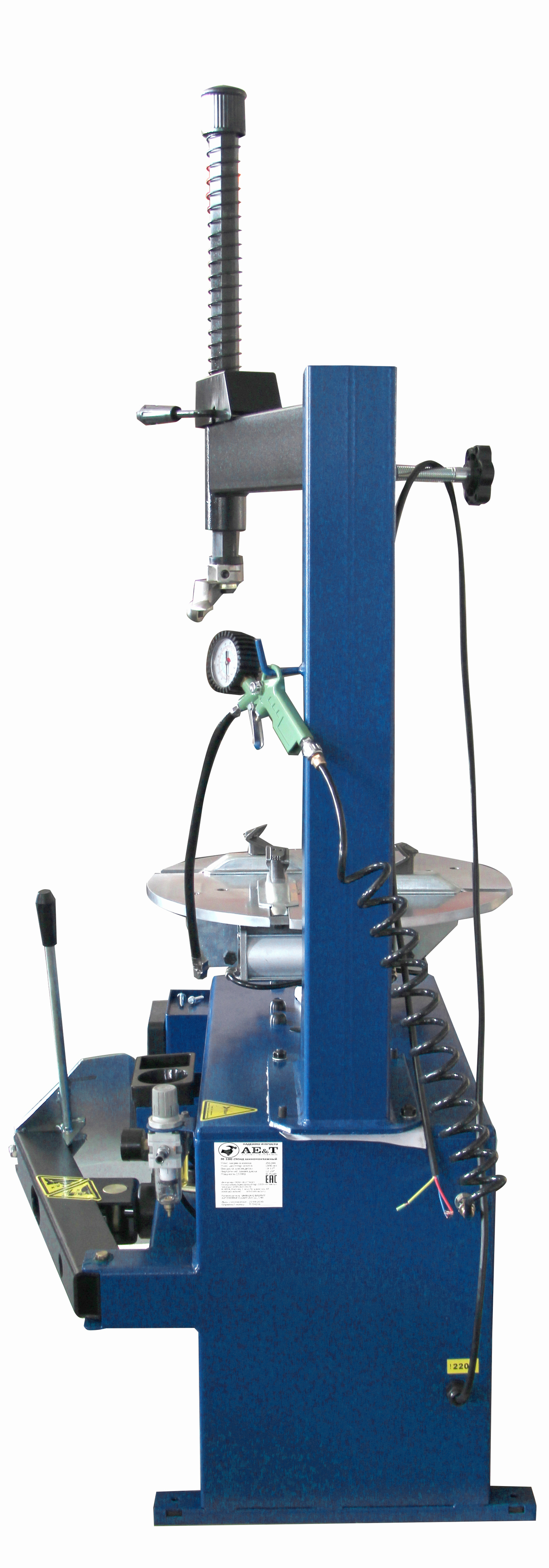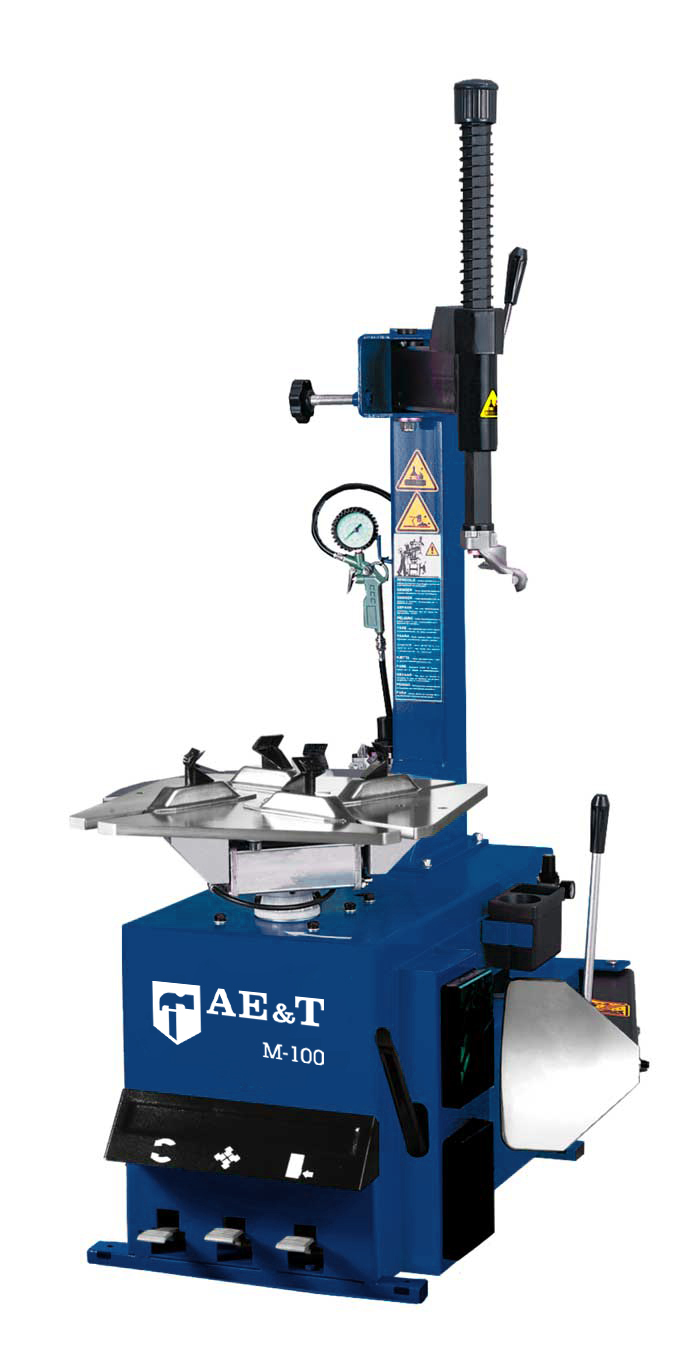 Полуавтоматический шиномонтажный стенд для колес легковых автомобилей. Облегчает демонтаж и монтаж шин с внутренним диаметром от 10 до 22 дюймов.