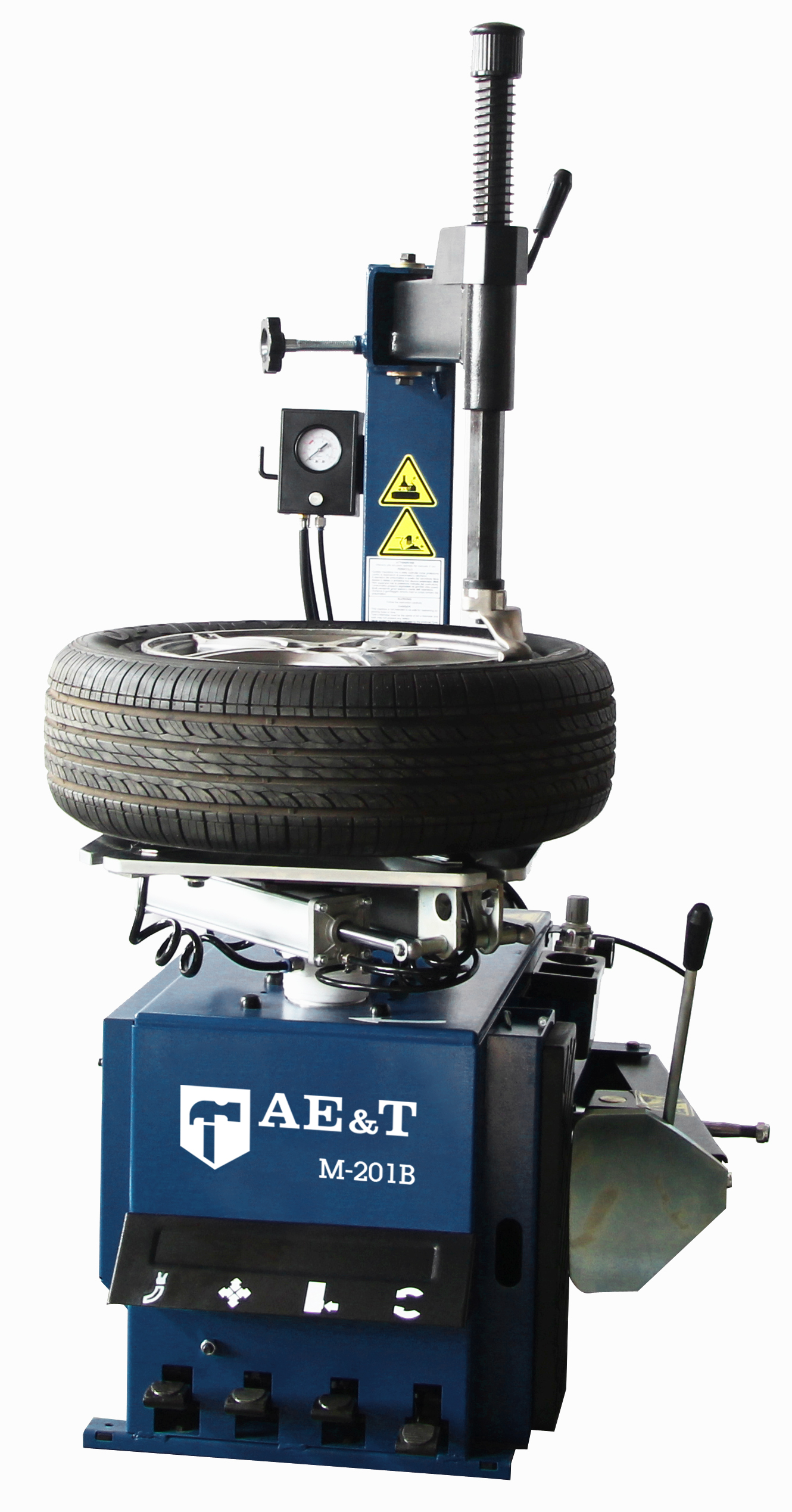 Полуавтоматический шиномонтажный станок М-201 В с модулем взрывной накачки значительно ускорит и облегчит стандартные работы по монтажу и демонтажу шин.