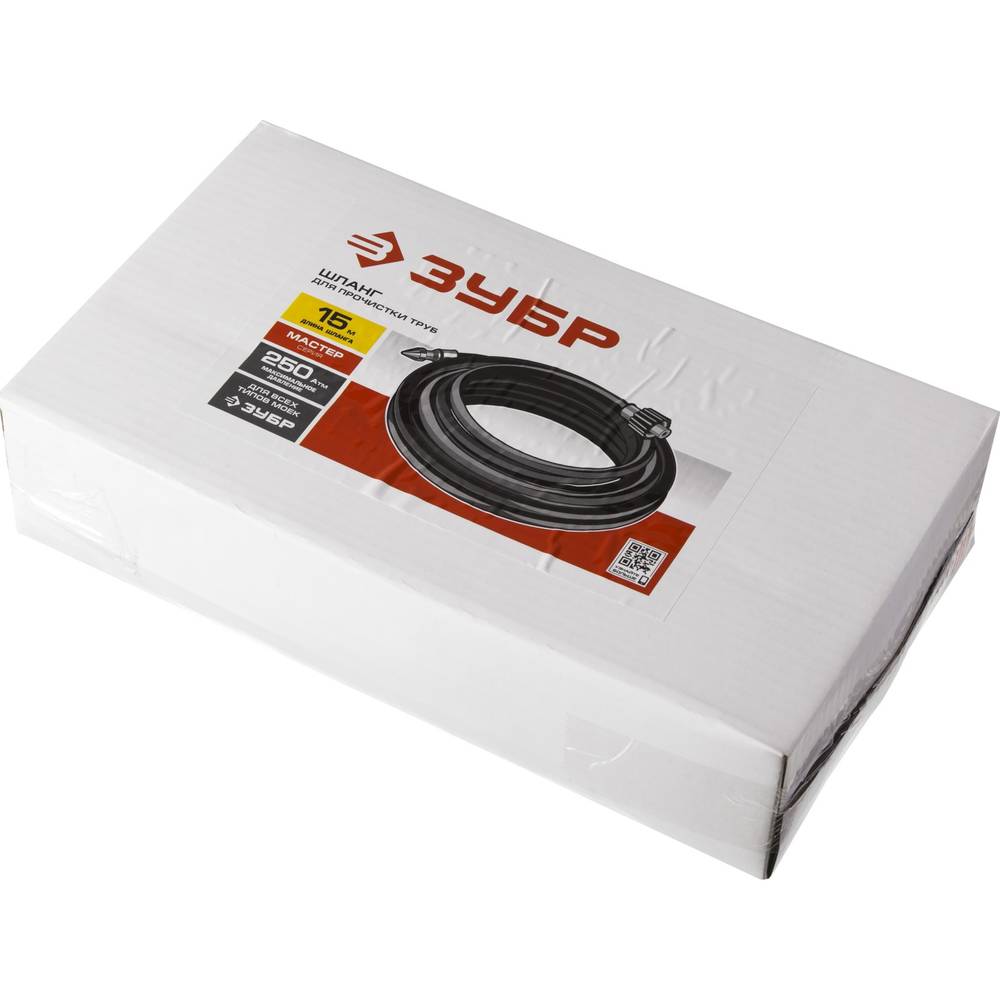 Шланг для прочистки труб ЗУБР 15 м 70414-375-15 используется для прочистки труб (сливных, дождевых, канализационных) от загрязнений путем подачи струй высокого давления. Подходит для моек ЗАВД-2500 и ЗАВД-3000.