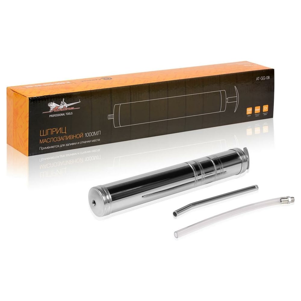 Маслозаливной шприц Airline металл, 1000 мл AT-GG-08 изготовлен из стали. Прочный корпус имеет защитное покрытие.