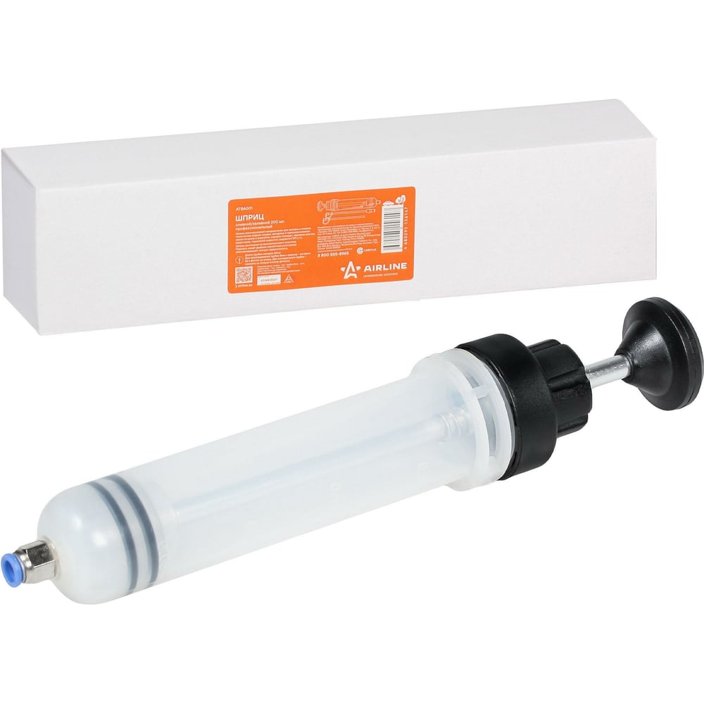 Профессиональный сливной/заливной шприц Airline пластик, 200 мл ATBA001 изготовлен из высокопрочного пластика. Поршень имеет двойное манжетное уплотнение обеспечивающее полную герметичность.