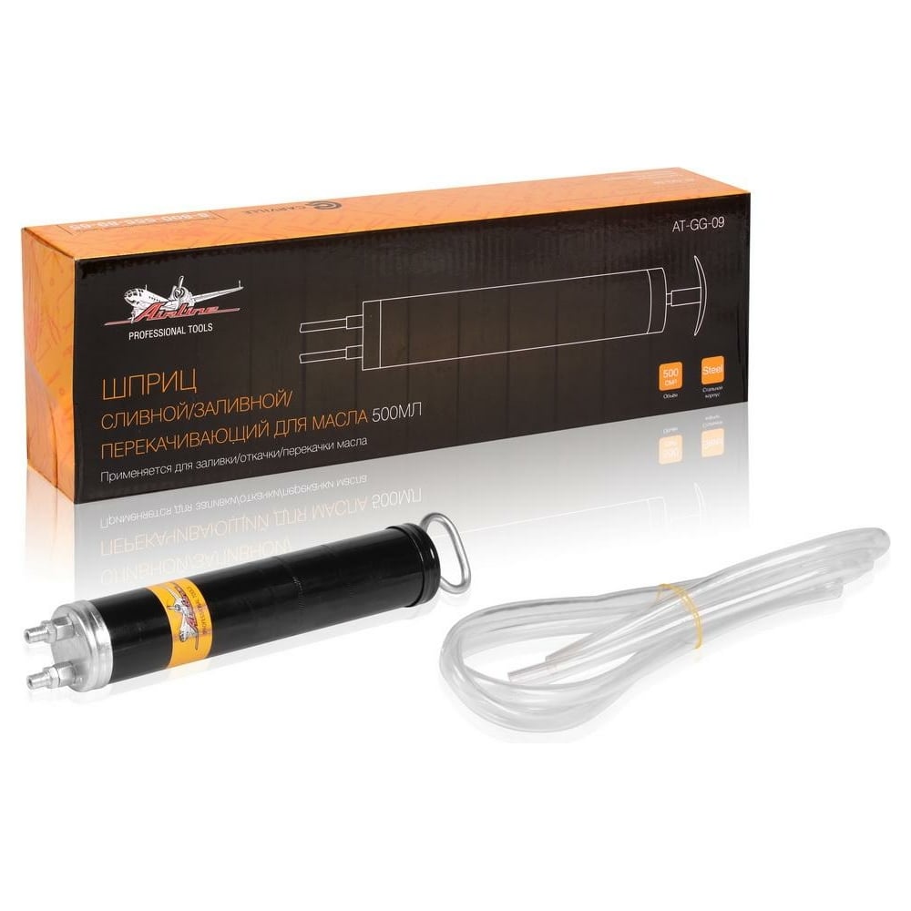 Сливной/заливной/перекачивающий шприц для масла AIRLINE 500 мл AT-GG-09 изготовлен из стали. Прочный корпус имеет защитное покрытие. Система клапанов позволяет перекачивать смазочный материал из картера механизма в ёмкость и наоборот.