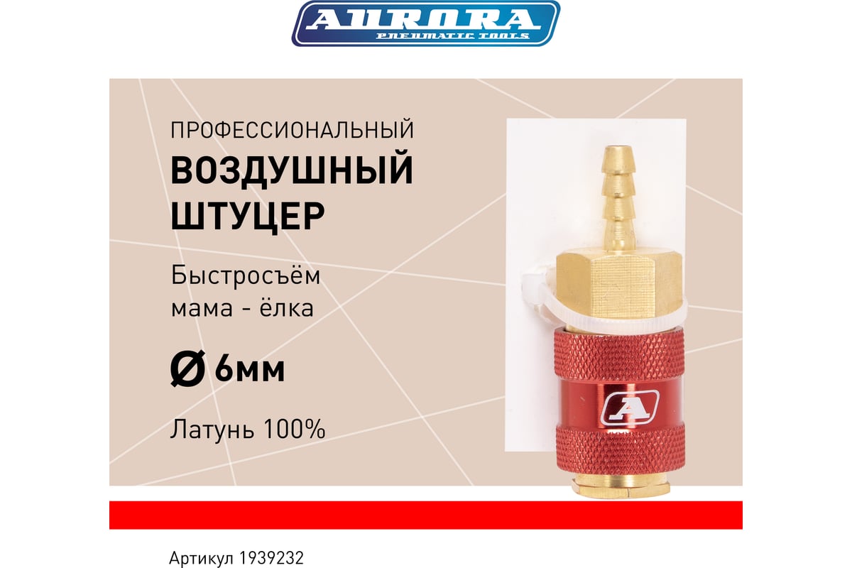 Штуцер профессиональный Aurora это быстросъемный элемент, который предназначен для быстрого и надёжного подключения пневматического шланга. Корпус изготовлен из латуни. Латунный корпус устойчив к появлению коррозии.