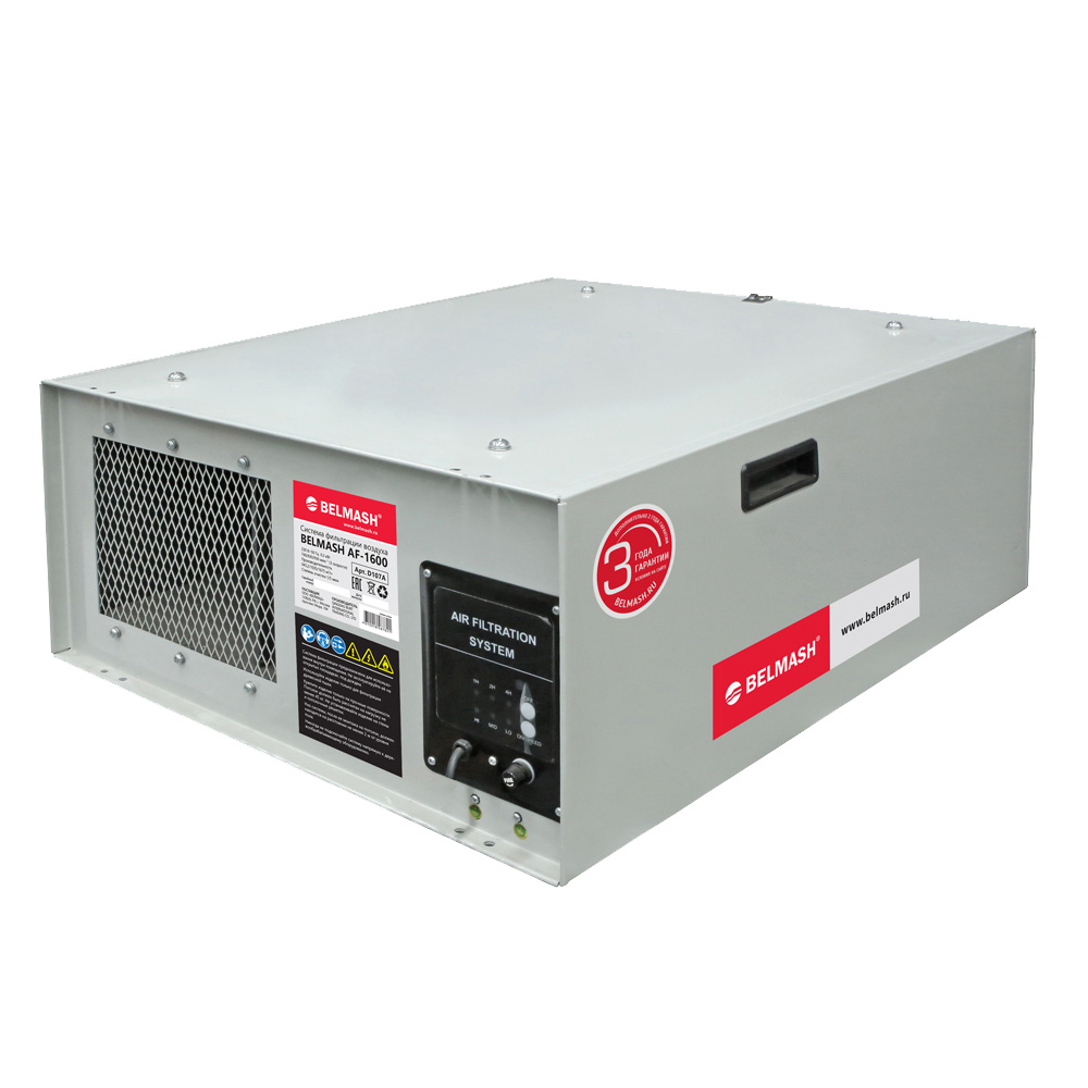 Система фильтрации BELMASH AF-1600 предназначена для очистки воздуха в производственных помещениях (столярных мастерских и т.п.) объемом до 300 м3.