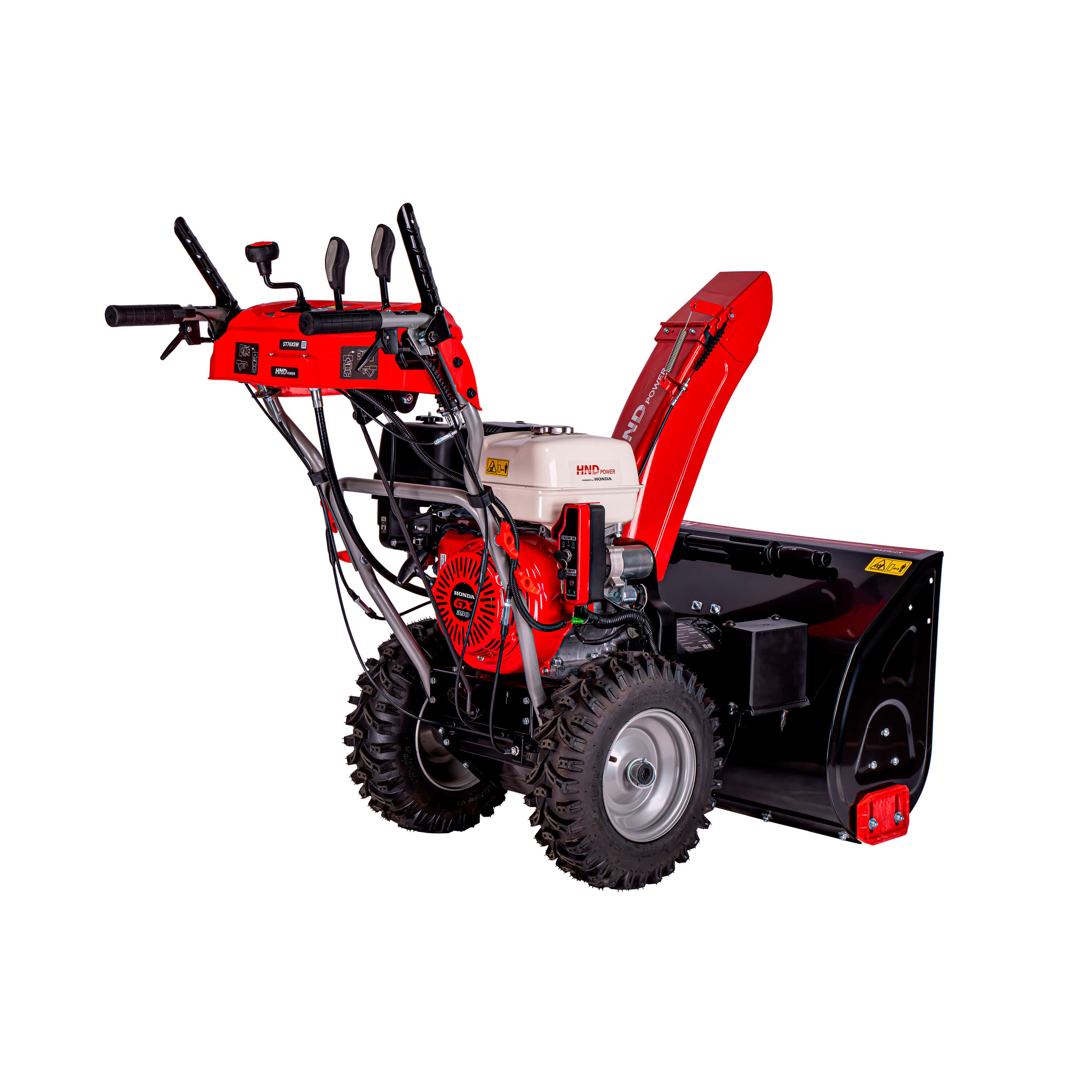 Снегоуборщик бензиновый HND ST 76 XSW с шириной захвата снега 76 см. Может быть использован как для очистки дорожек и придомовой территории в частном секторе, так и для городских придомовых территорий с большими площадями уборки, придомовых парковок. Снегоуборщик оснащен двухступенчатой системой со стальным шнеком с зубцами и регулируемым желобом, что позволяет эффективно измельчать плотный снег и наст изо льда. На снегоуборщике установлен электростартер, что позволяет обеспечить легкий запуск при минусовых температурах. В комплектацию ST76XSW входит светодиодная фара в виде полосы, расположенная на панели управления, что позволяет эффективно осуществлять работу в темное время суток и в условиях плохой видимости.