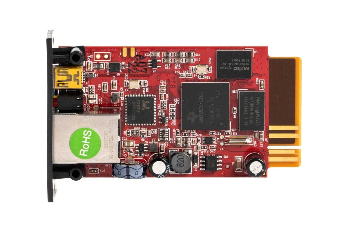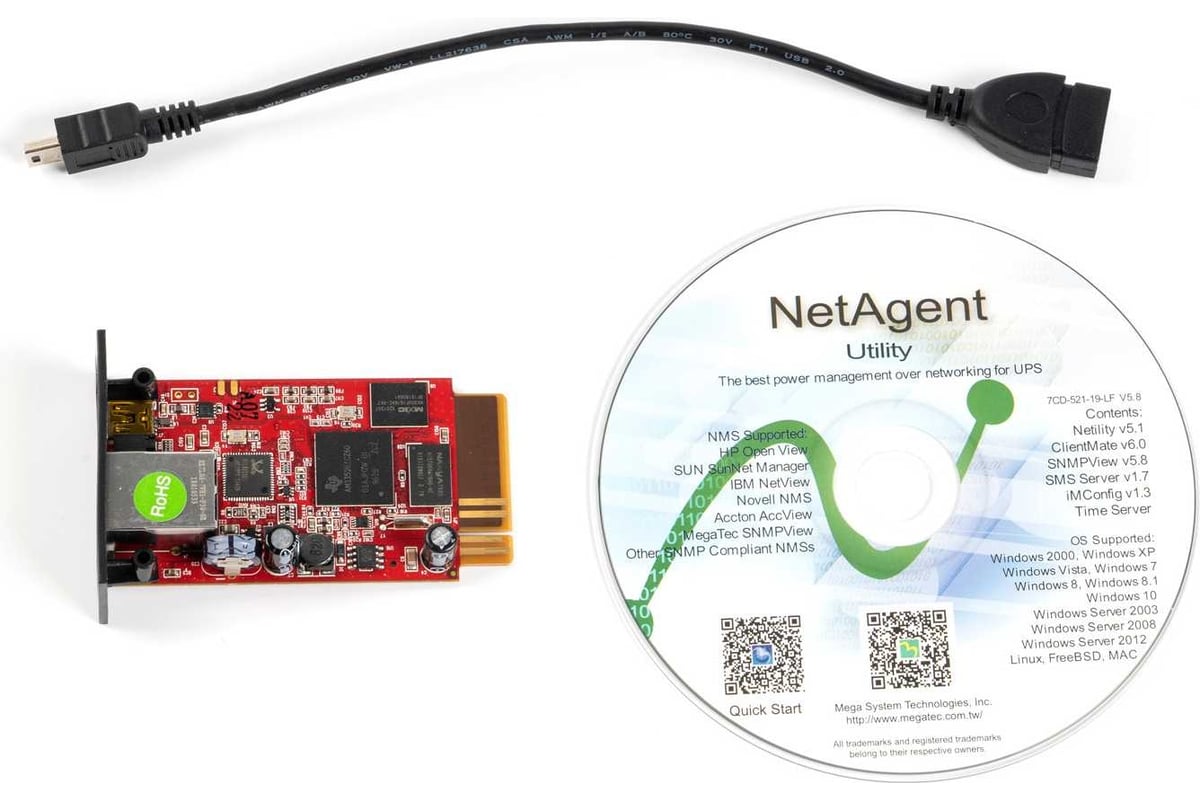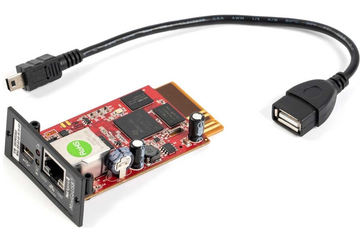 SNMP-модуль предназначен для SKAT UPS серии RACK мощностью от 1 кВА до 10 кВА. Обеспечивает мониторинг и управление ИБП в компьютерной сети с обеспечением автоматического корректного завершения работы серверов и рабочих станций. Имеет функцию автоопределения 10M/100M Fast Ethernet. Управление и конфигурация осуществляется через Telnet, Web-браузер или NMS. Поддержка протоколов TCP/IP, UDP, SNMP, Telnet, SNTP, PPP, HTTP, SMTP.