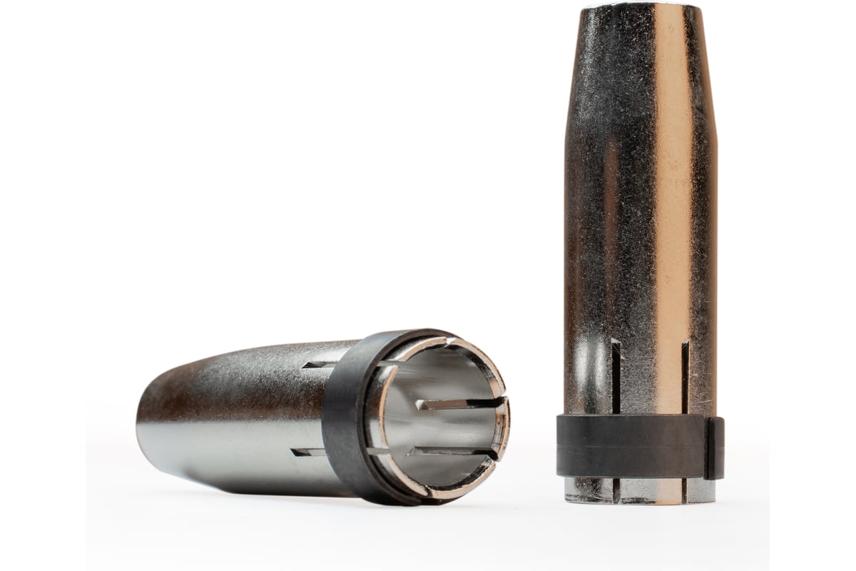 Сопло MIG-MAG - это расходная часть горелки, которая отвечает за формирование струи защитного газав процессе полуавтоматической сварки. В процессе работы сварочные брызги налипают на сопло, а продолжительные работы на максимальных токах выжигают сопло изнутри. Поэтому деталь приходится периодически менять. Для того, чтобы продлить жизнь расходнику – сопло необходимо время от времени зачищать.
