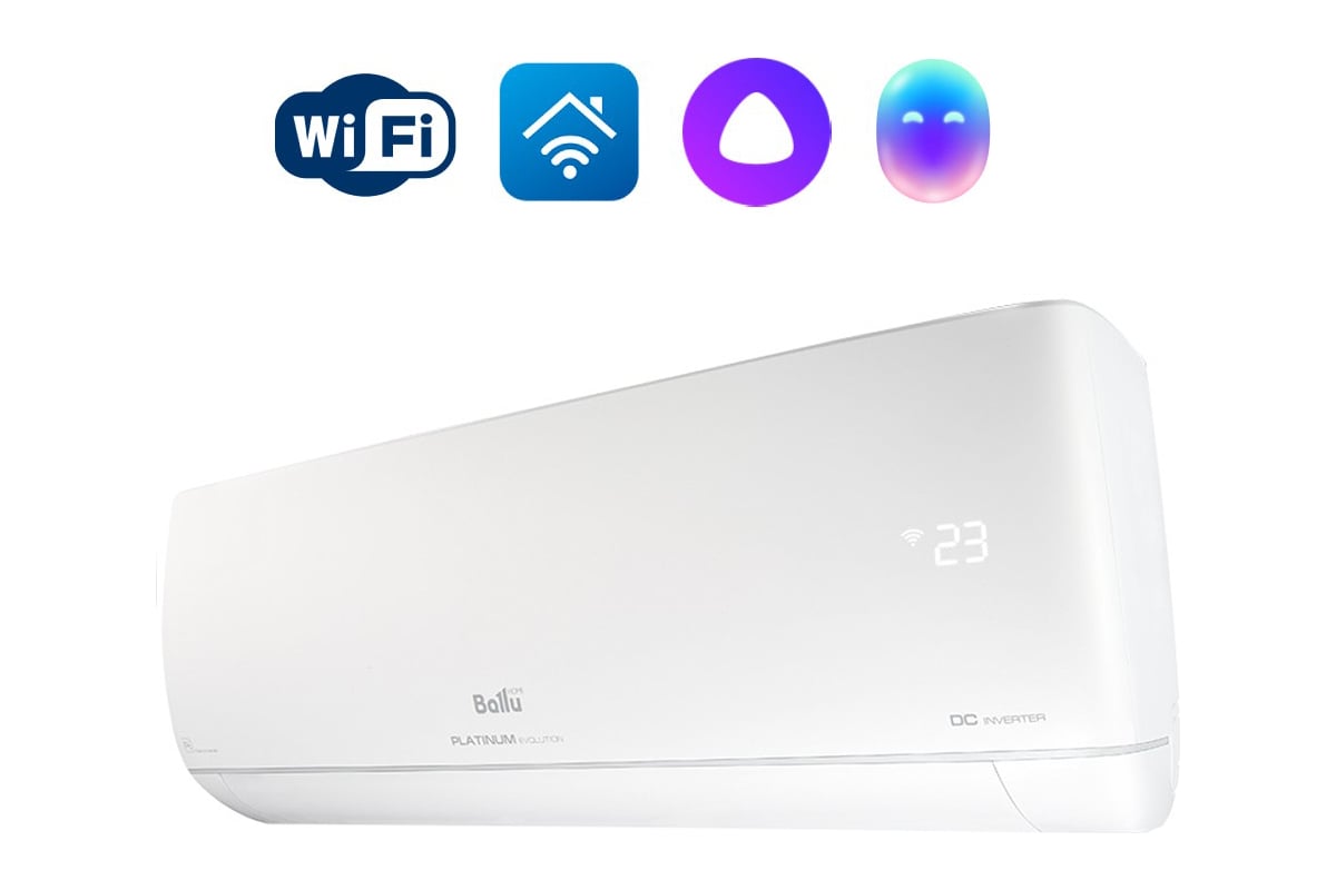 Инверторная сплит-система Platinum Evolution – флагман линейки кондиционеров Ballu, который использует в работе самый экологичный и энергоэффективный хладагент – R32. Модель совмещает в себе высокую производительность и рекордно низкий уровень шума 19 дБ(А). Platinum Evolution способен эффективно работать на обогрев до -20°С. Возможность подключения Wi-Fi модуля Hommyn делает сплит-систему максимально удобной для управления из любой точки мира.