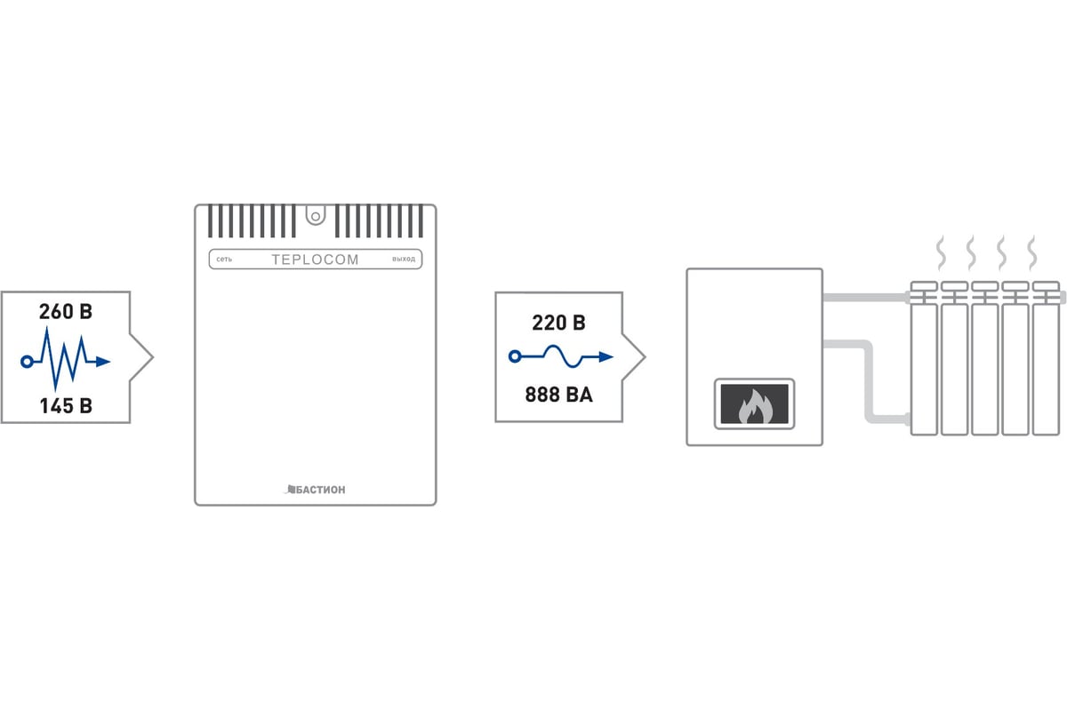 Стабилизатор сетевого напряжения TEPLOCOM ST-888 разработан для улучшения качества энергоснабжения и предназначен для систем отопления. Он подходит для установки на различных объектах, таких как коттеджи, квартиры, офисы, промышленные предприятия и учреждения.
