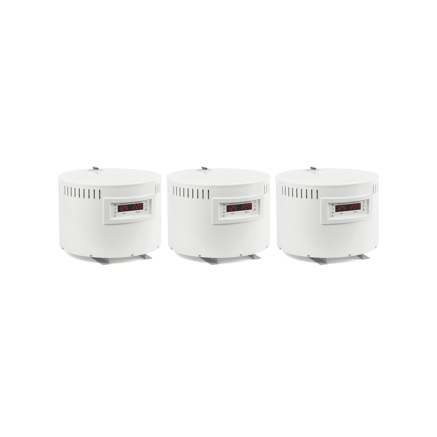 Комплект из трёх стабилизаторов SKAT STP - готовое универсальное решение для защиты электроприборов в трёхфазной сети. Подходят для бытового или коммерческого использования. Предназначены для защиты устройств с суммарной потребляемой мощностью 30 кВА.