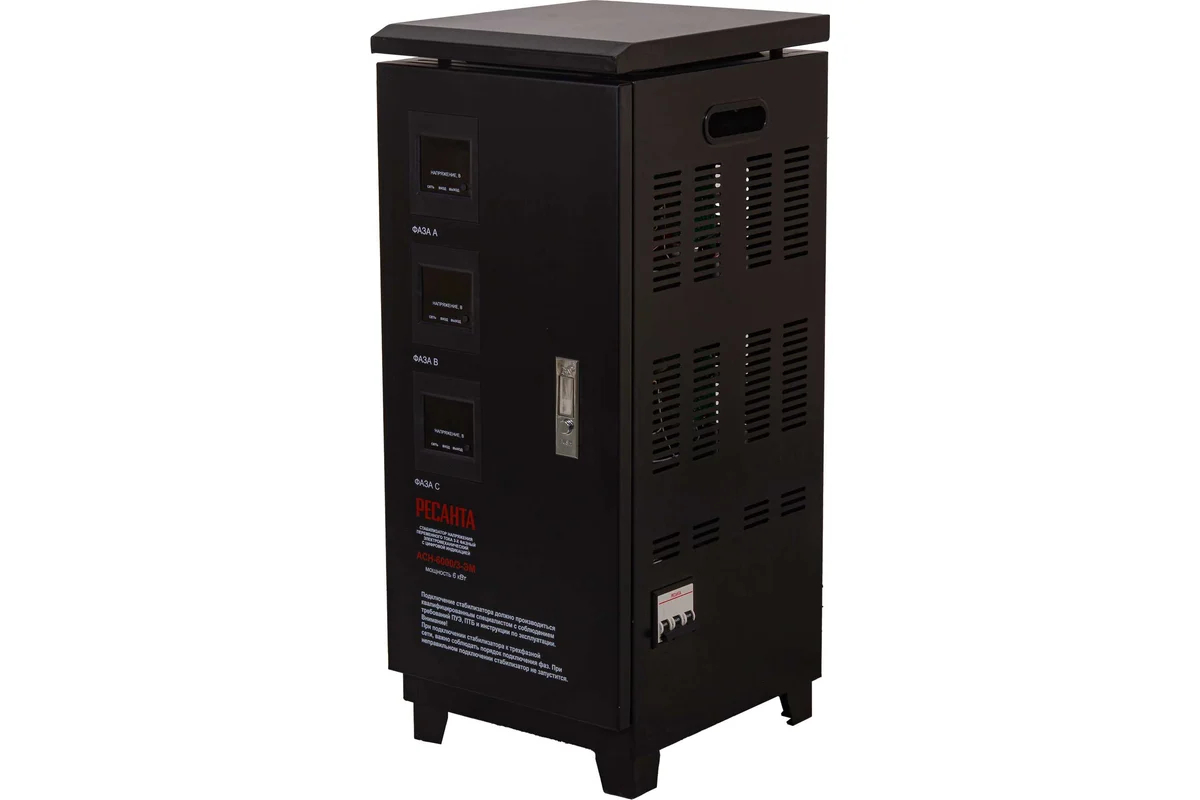 Стабилизатор напряжения Ресанта АСН-6000/3-ЭМ электромеханического типа предназначен для защиты трехфазного оборудования мощностью до 6000 Вт. Устройство эффективно преобразует входное напряжение в диапазоне 240-430 В в стабильные 380 В с погрешностью не более 2%. Скорость коррекции напряжения составляет 30 В/с, что обеспечивает надежную защиту подключенных приборов от колебаний сети и помех.