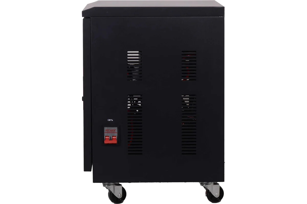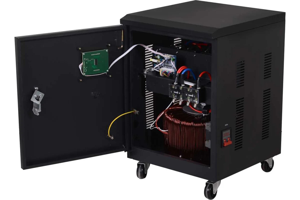 Оснащенный цифровым дисплеем для контроля параметров работы, сетевыми фильтрами и микропроцессорным управлением, стабилизатор гарантирует точное и быстрое реагирование на изменения в сети. Прочный металлический корпус и поворотные колеса обеспечивают удобство перемещения и долговечность эксплуатации, делая этот стабилизатор практичным решением даже для ограниченных пространств.