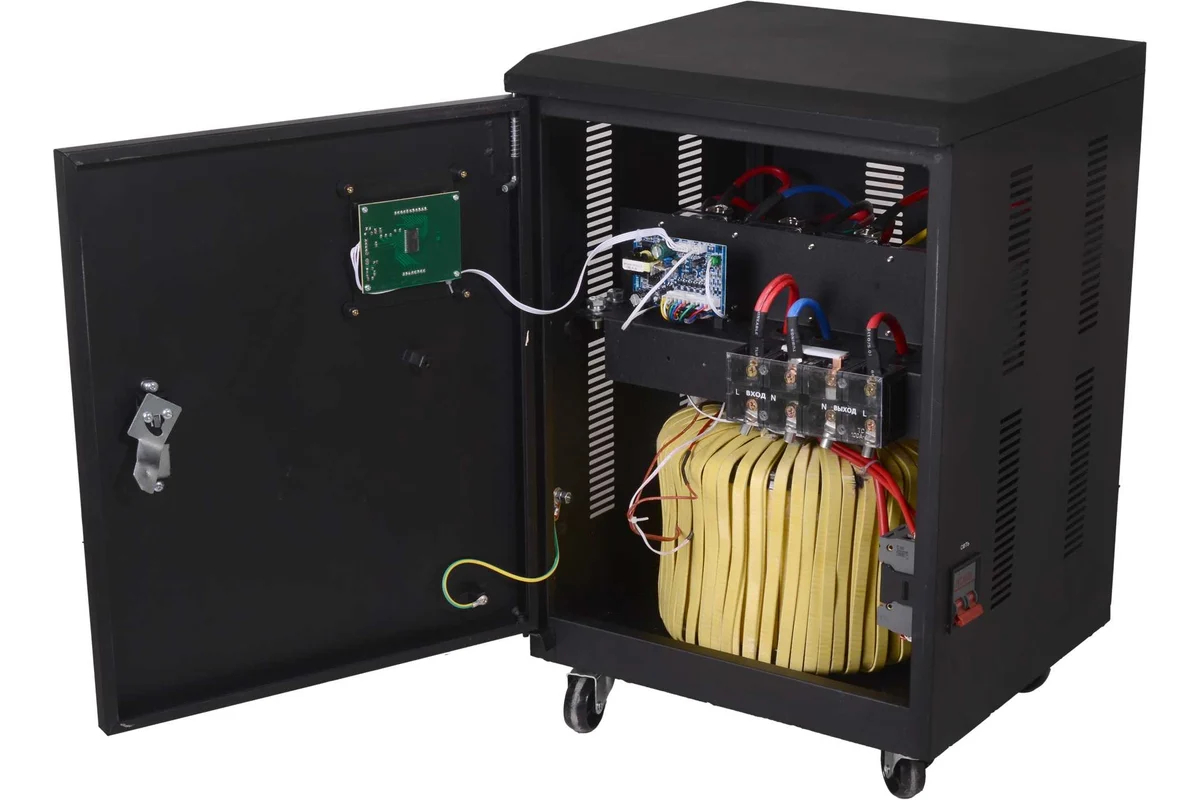 Оборудование предназначено для напольной установки в помещениях с температурой от 0 до +40°C. Информативный LED-дисплей на лицевой панели позволяет контролировать параметры работы. Благодаря высокой мощности стабилизатор способен обеспечивать бесперебойное электропитание всего дома или небольшой производственной линии, что особенно актуально для регионов с нестабильным энергоснабжением.