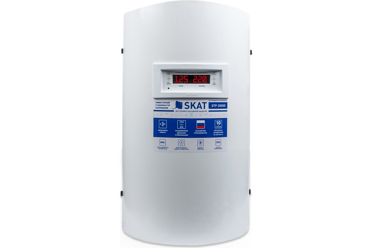 SKAT STL-20000 исп. Н - стабилизатор напряжения с симисторными ключами управления. Качественная элементная база, цифровая индикация, безопасное подключение и революционная форма корпуса.
