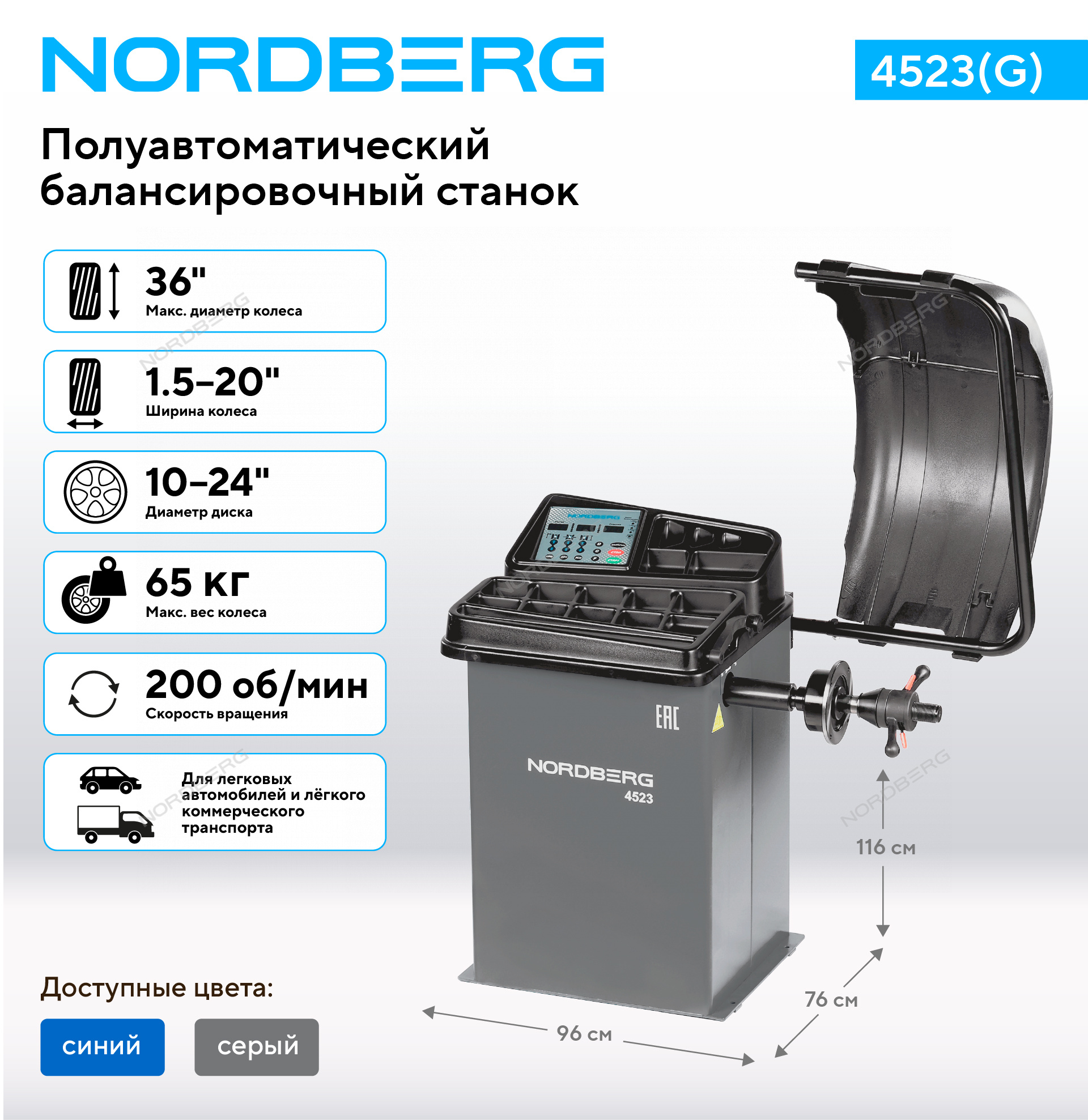 Балансировочный стенд NORDBERG 4523(G) позволит максимально точно и за минимальный промежуток времени провести работы, связанные с балансировкой колес, повысив качество обслуживания клиентов в автосервисах и шиномонтажных мастерских.