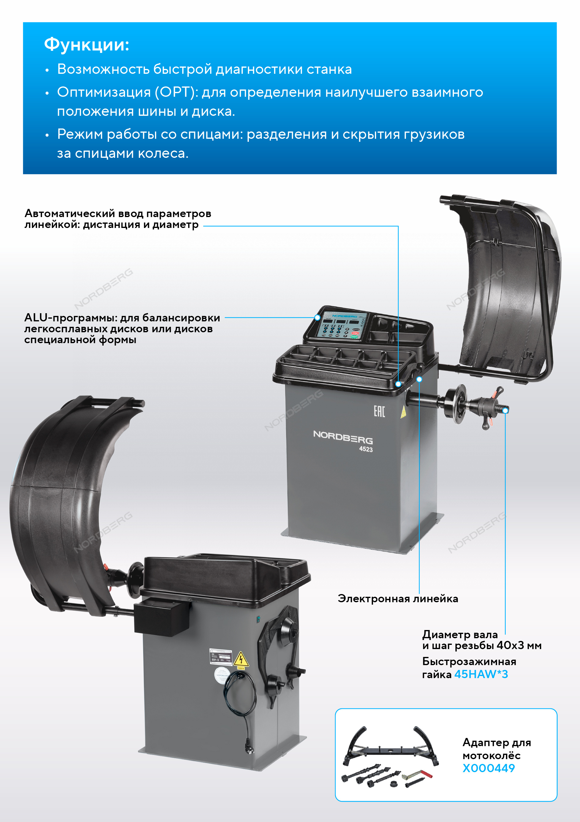 Балансировочный станок NORDBERG 4523(G) – специализированное оборудование для балансировки колес легкового транспорта и микроавтобусов.