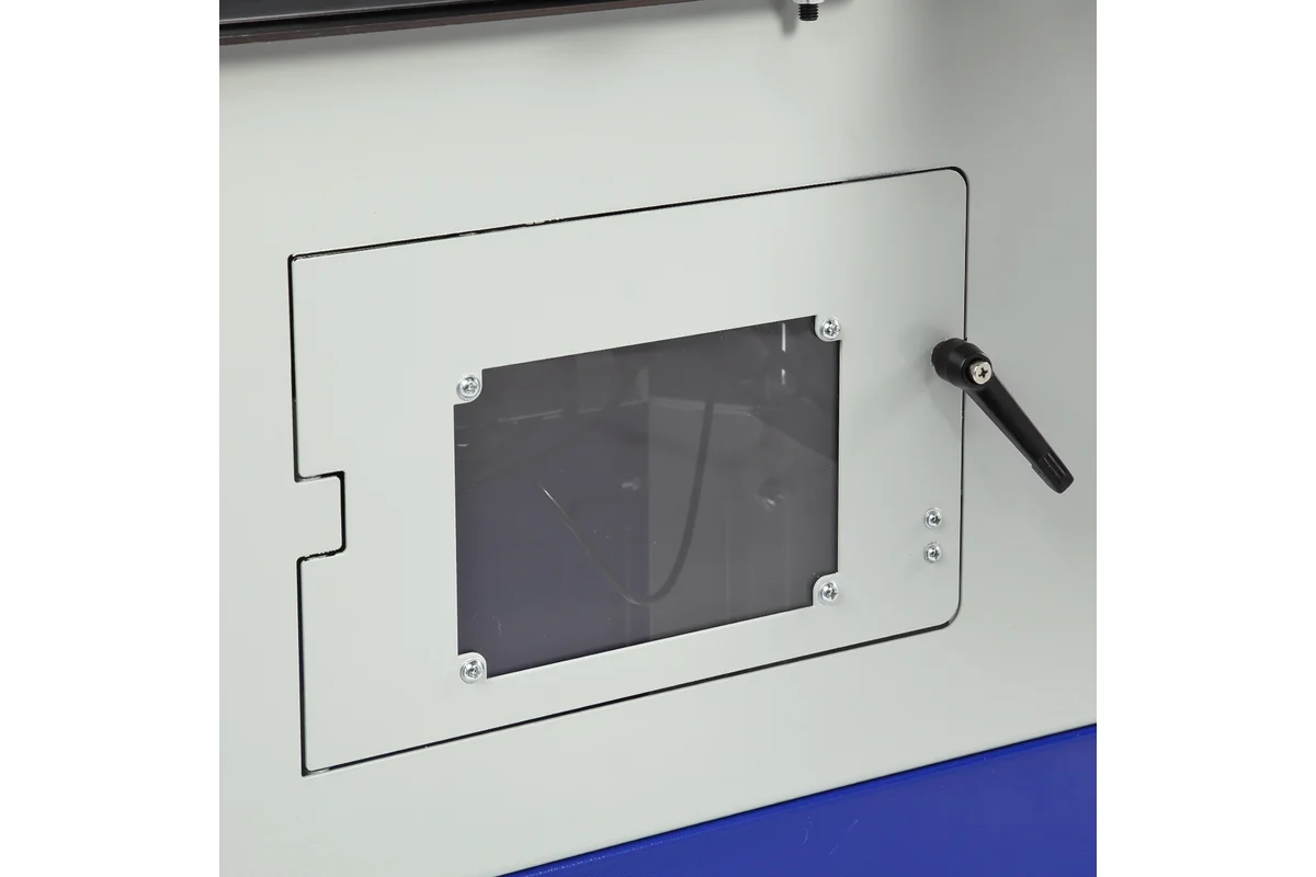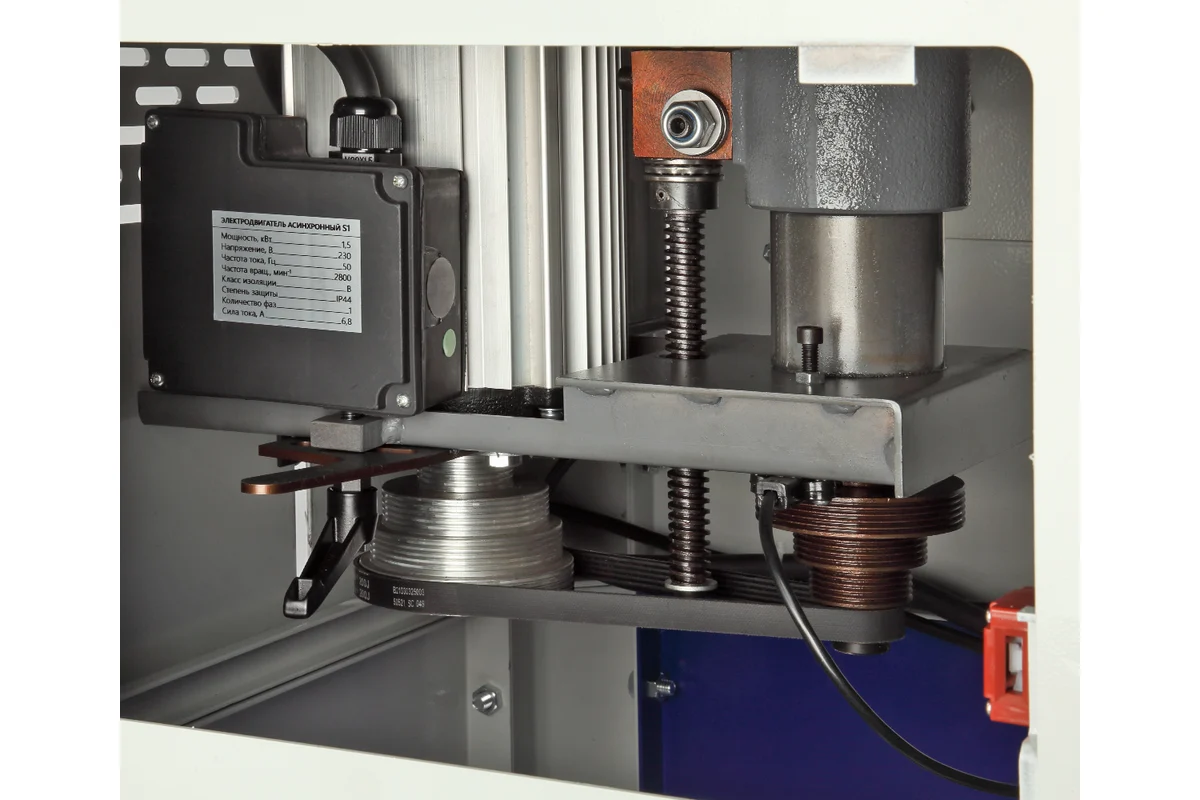 Станок оснащен чугунным рабочим столом и кареткой с подвижным столом. Подвижный стол выполнен из алюминия, в нем имеется стандартный паз под установку углового упора с эксцентриковым зажимом для фиксации заготовок. Корпус изделия закрытый, изготовлен из листовой стали. В комплект поставки входит шпиндель 30 мм и зажимной патрон с тремя цангами (8, 12 и 12,7 мм) и наборные кольца разной высоты. Принадлежности для шлифования и фрезерования являются дополнительными аксессуарами в комплект поставки не входят. Питание станка осуществляется от сети переменного тока напряжением 230 В ±10 и частотой 50 Гц ±5%, с защитным (заземляющим) проводом по ГОСТ 12.1.030-81*. Качество источника электрической энергии по ГОСТ 32144-2013.