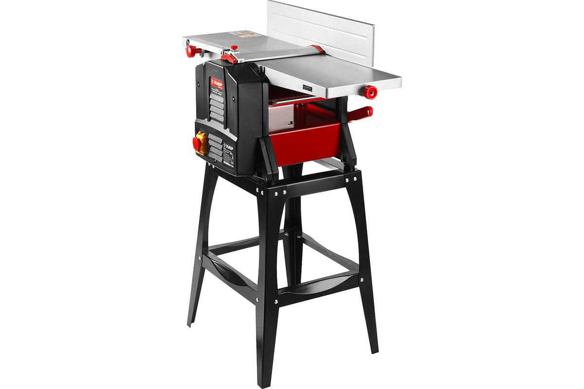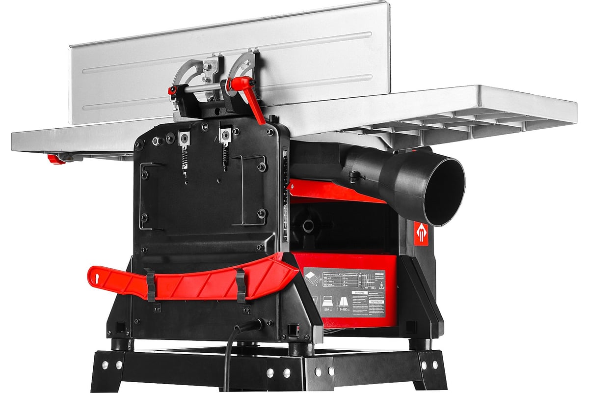 Рейсмусно-фуговальный станок ЗУБР МАСТЕР СРФ-254-1600С позволяет обрабатывать древесину методом строгания по плоскости, по ребру или по заданным размерам. Установка не доставляет сложностей в управлении, смена операций происходит легко и просто. Модель не требует специального технического обслуживания. Ременная передача и защита двигателя от перегрузок способствуют длительной бесперебойной эксплуатации станка. Деталь подается автоматически при этом скорость подачи составляет 6 метров в минуту. Благодаря двум стальным ножам устройство способно работать с древесиной как твердых, так и мягких пород. Гладкая поверхность рабочего стола облегчает подачу изделия в зону реза. Оборудование оснащается аспирационным отверстием диаметром 100 мм для пылеотведения.