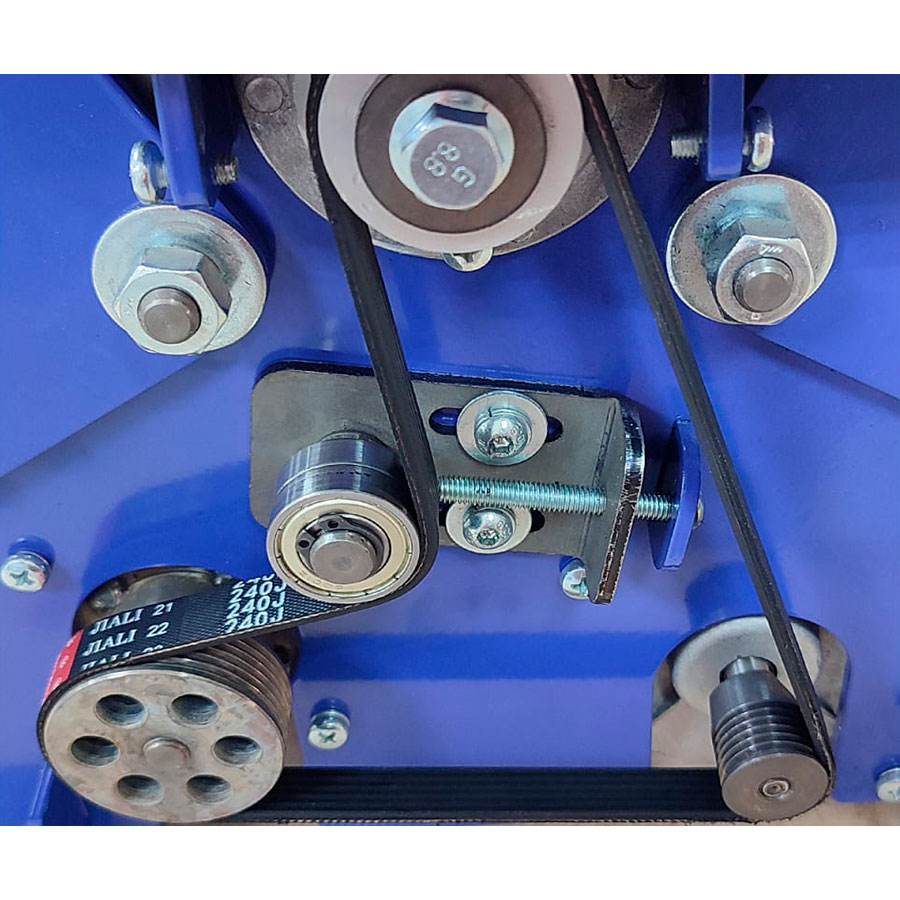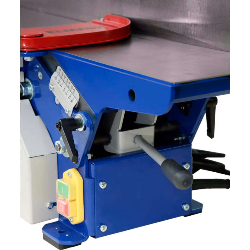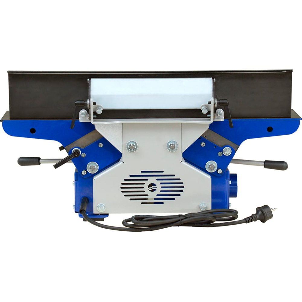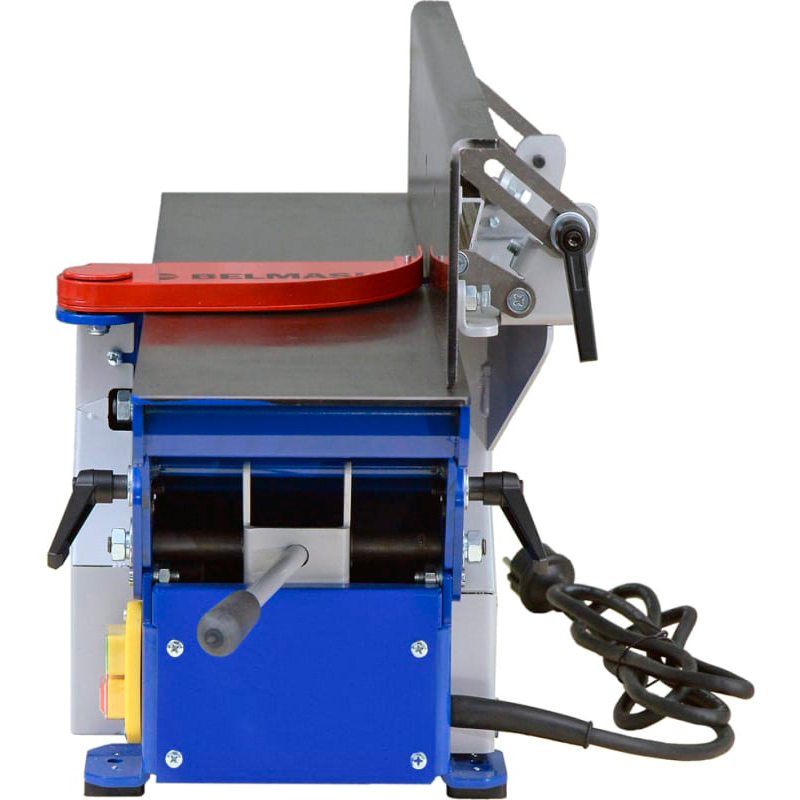 Станок фуговальный BELMASH BJM-750/150T предназначен для обработки древесины фугованием (строганием). При соответствующей наладке можно выполнять следующие виды обработки: фугование (строгание) по пластику или кромкам; фугование (строгание) под углом (по ребрам). Вращение от коллекторного двигателя (режим работы S1) к ножевому валу передается с помощью поликлиноременной передачи. Ремень охватывает ведущий, ведомый шкивы и шкив турбины системы удаления отходов резания. Крыльчатка встроена в корпус станка, а к патрубку (_63мм) присоединяется специальный стружкосборник. Длина рабочей части – 154мм. Диаметр с установленными ножами - 55мм. При фуговании приёмный стол устанавливается на уровне реза ножей, а загрузочный стол имеет возможность опускаться ниже этого уровня, что обеспечивает установку необходимой глубины (до 3мм). Ее настраивают с помощью регулируемой шкалы. Общий размер столов – 750x175мм. Подача ручная. Параллельный упор выполнен из шлифованной листовой стали толщиной 5мм и имеет возможность наклона от 0 до 45 градусов.