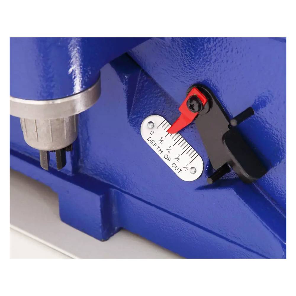 Подающий и приёмный столы перемещаются по направляющим «ласточкин хвост», что обеспечивает надежность и долгий срок службы. Для удобной настройки подающего стола на рукоятке регулировки глубины строгания добавлена скоба быстрой фиксации. Максимальная глубина регулировки подающего стола 13мм (для операции отбора четверти).